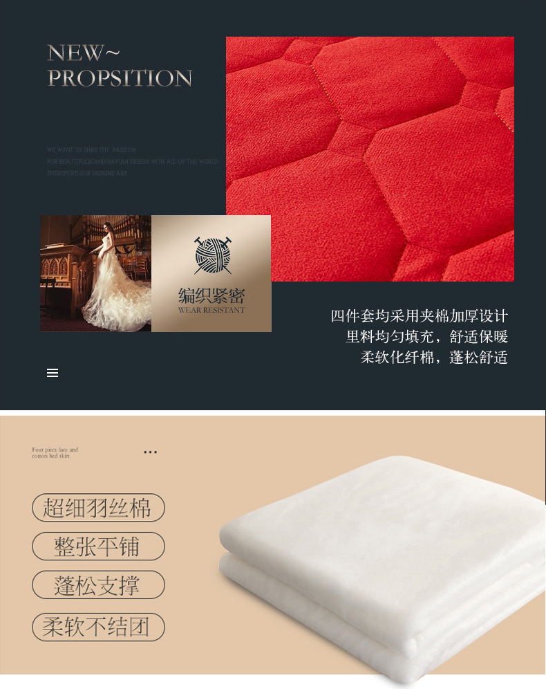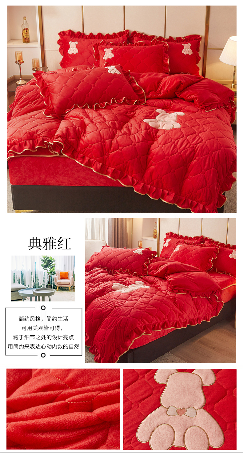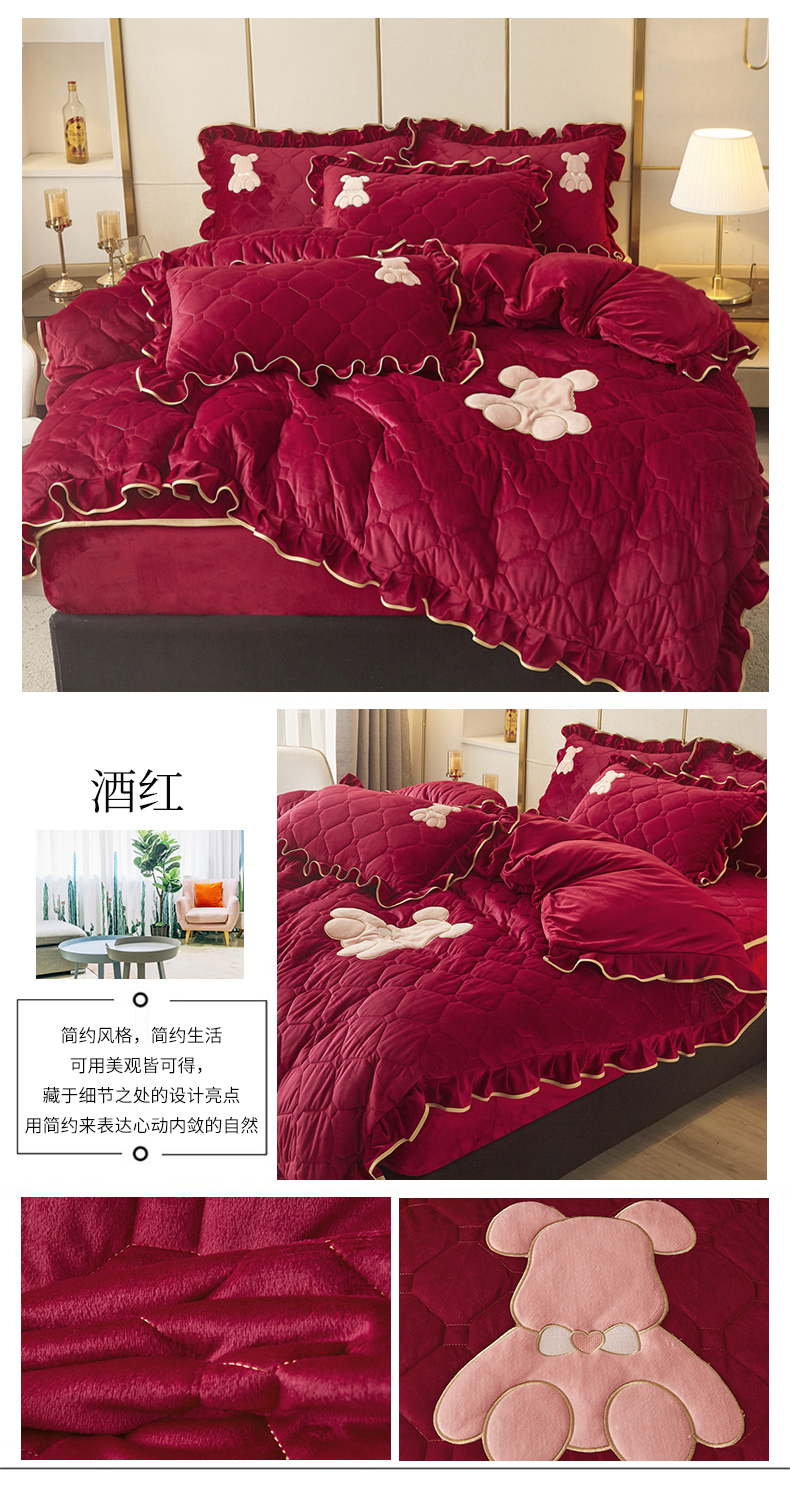 (总)屹成家纺2025新款水晶绒夹棉绗缝床裙四件套(塞纳河畔)四件套起售价不低于230元,大红,豆沙,翡翠绿,粉玉,橄榄绿,蔚蓝,银灰