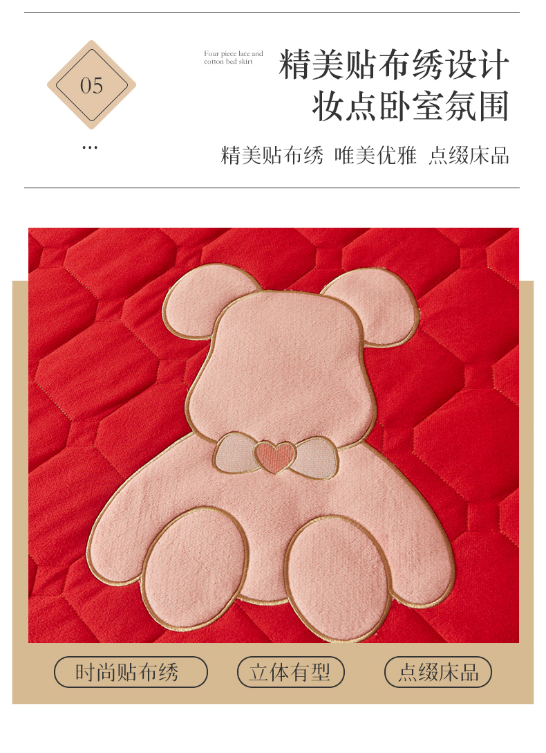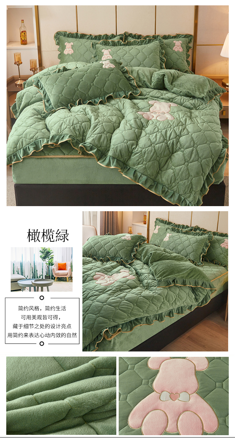 商品名称:(总)屹成 2024新款水晶绒夹棉床笠款四件套贴布绣款-小熊款