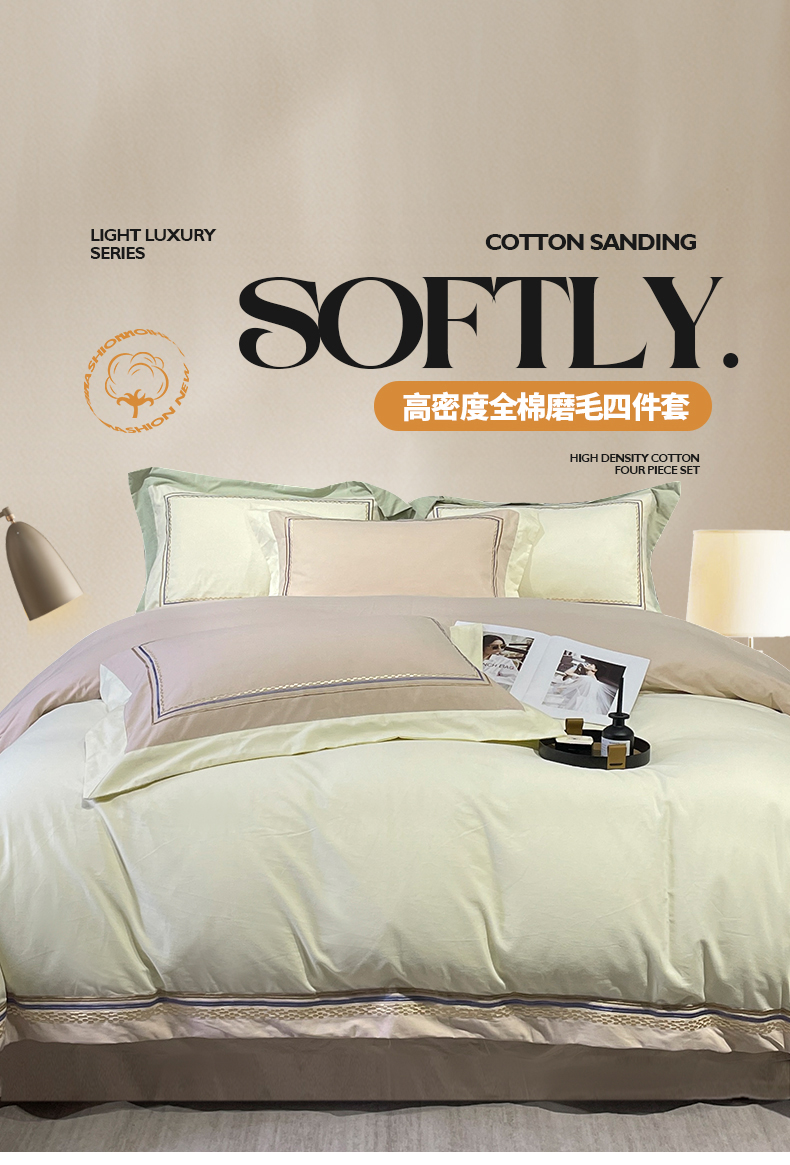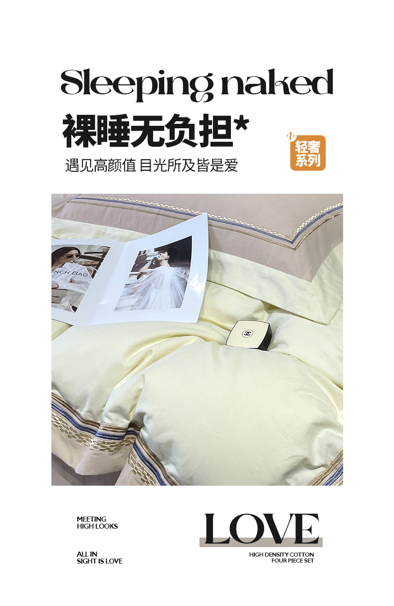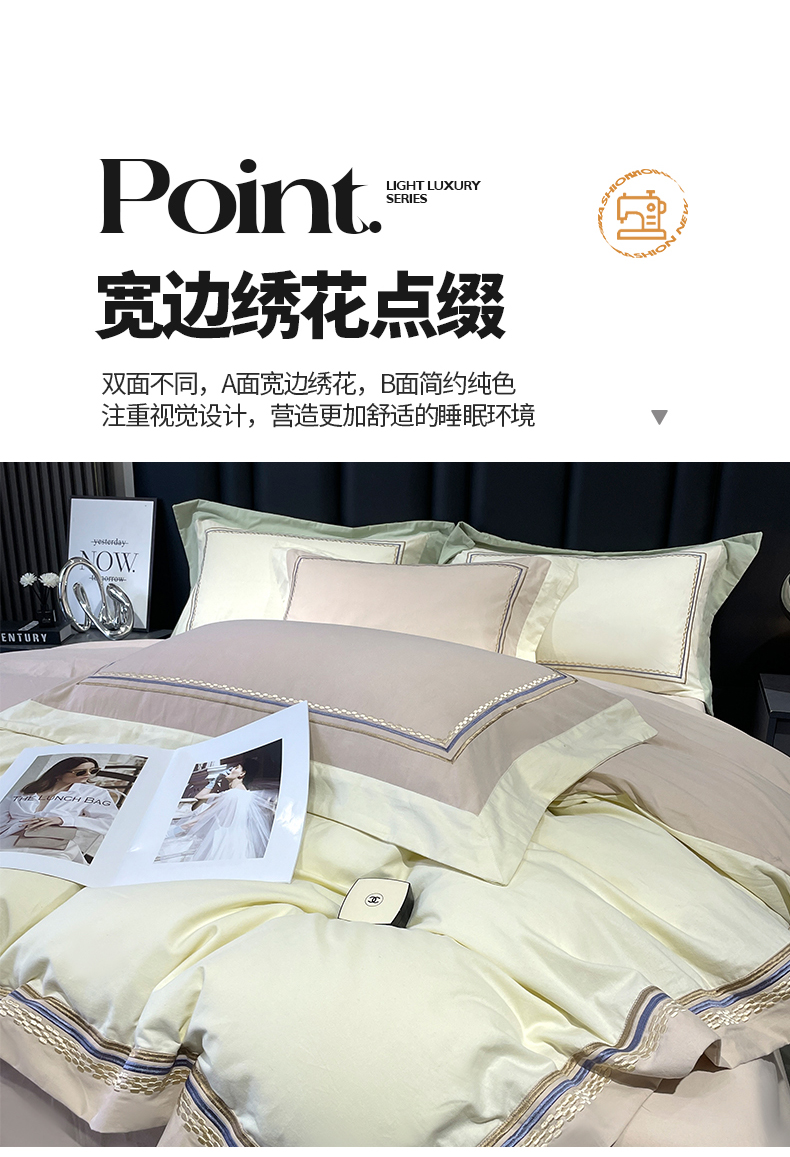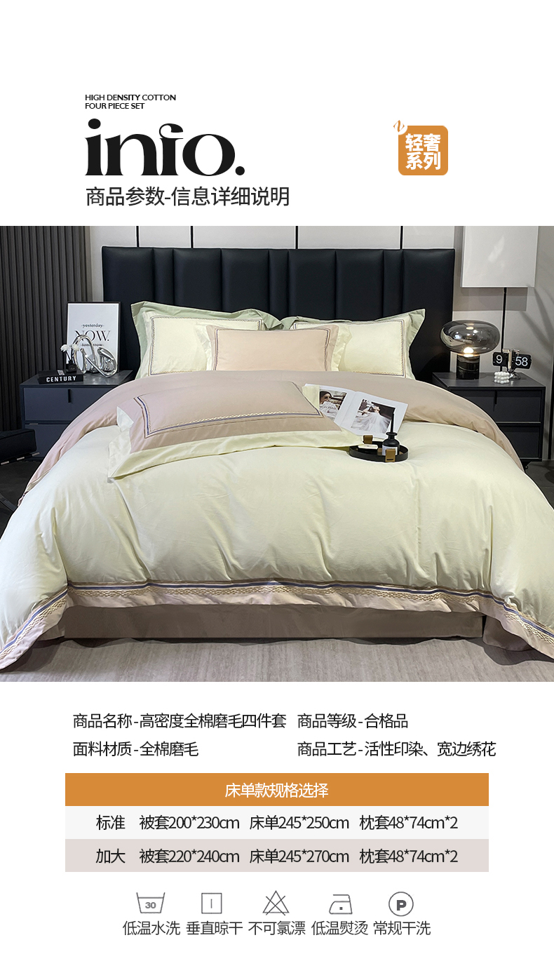 商品名称:懒猫 2024新款高精密全棉磨毛绣花四件套 泰洛-象牙白