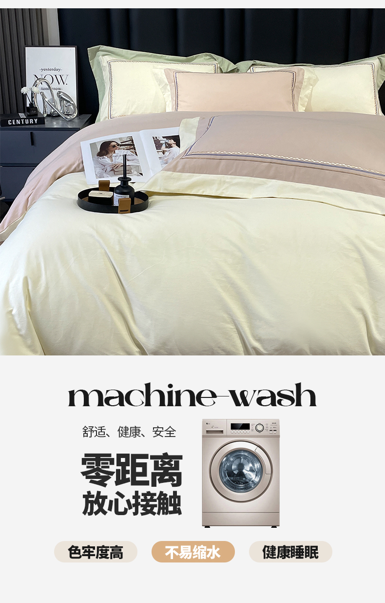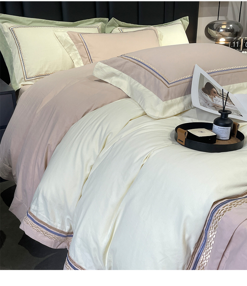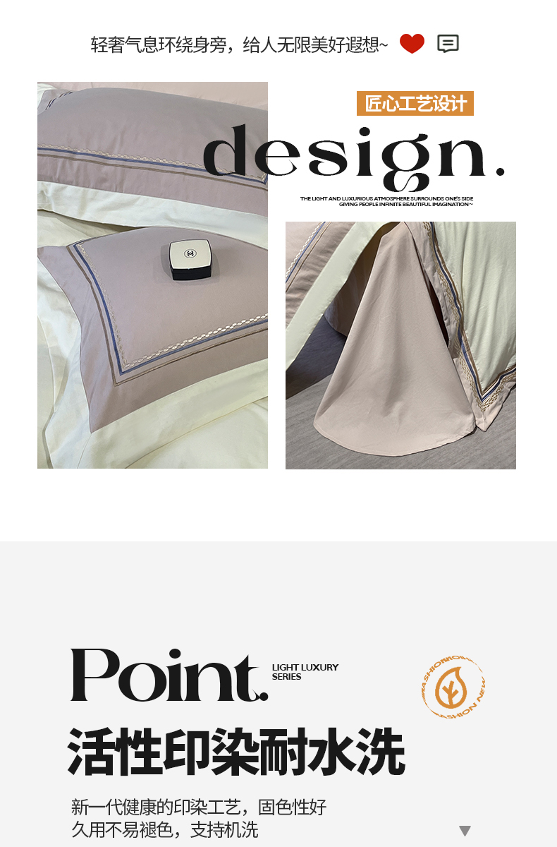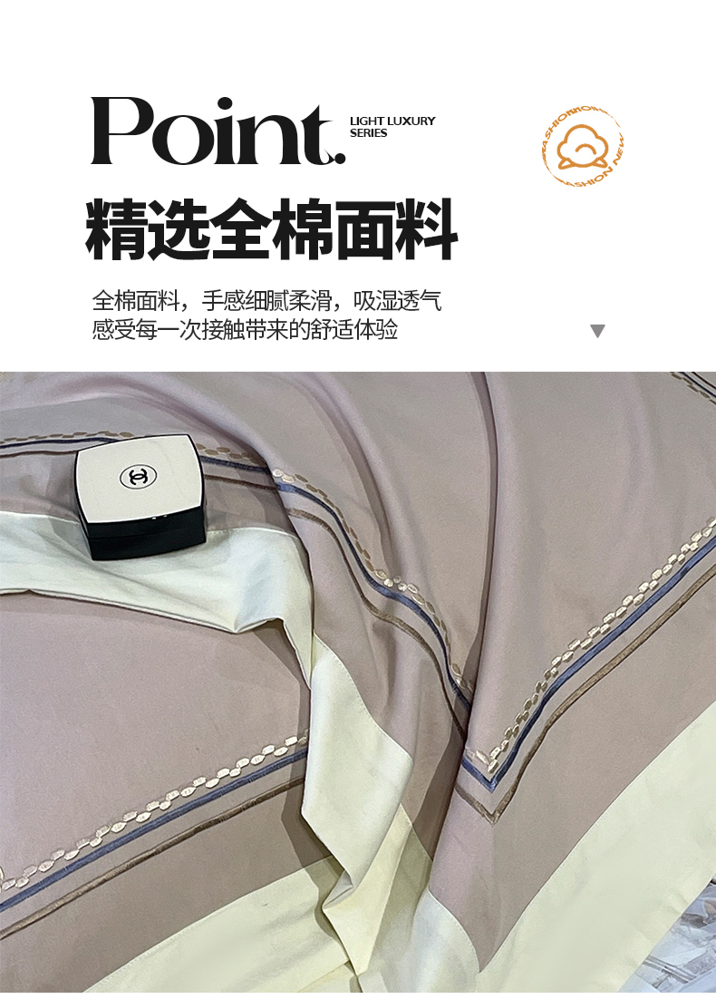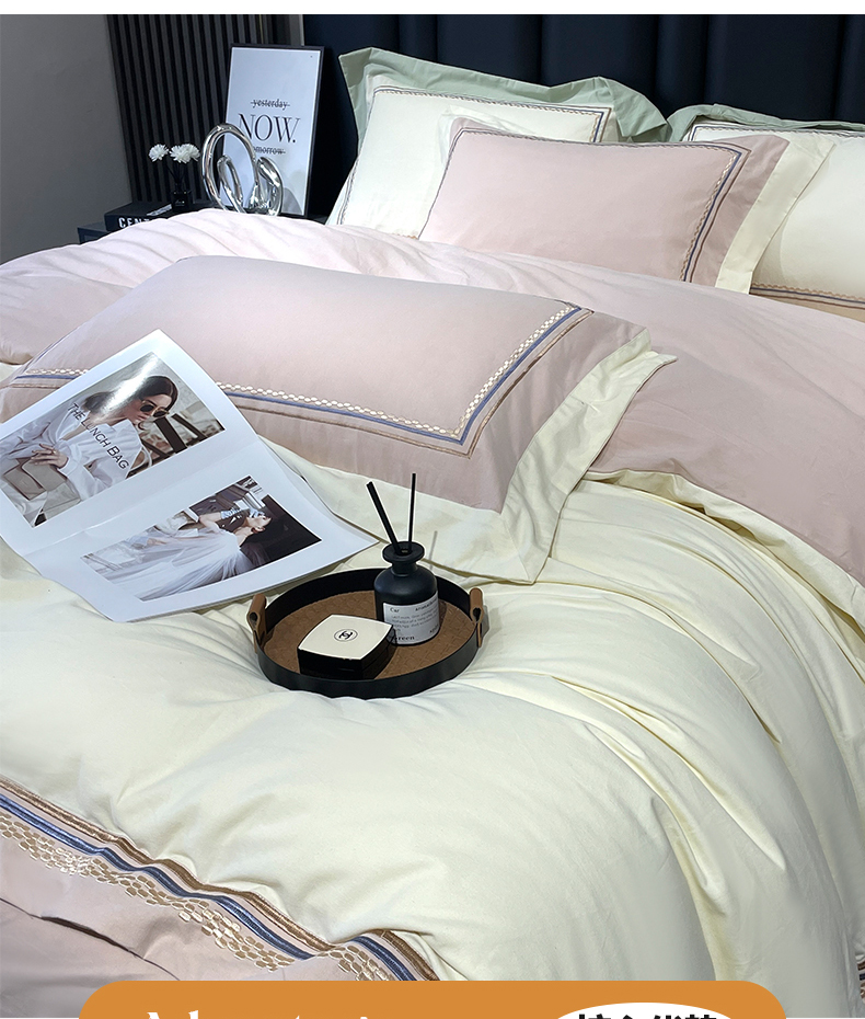 商品名称:懒猫 2024新款高精密全棉磨毛绣花四件套 泰洛-象牙白