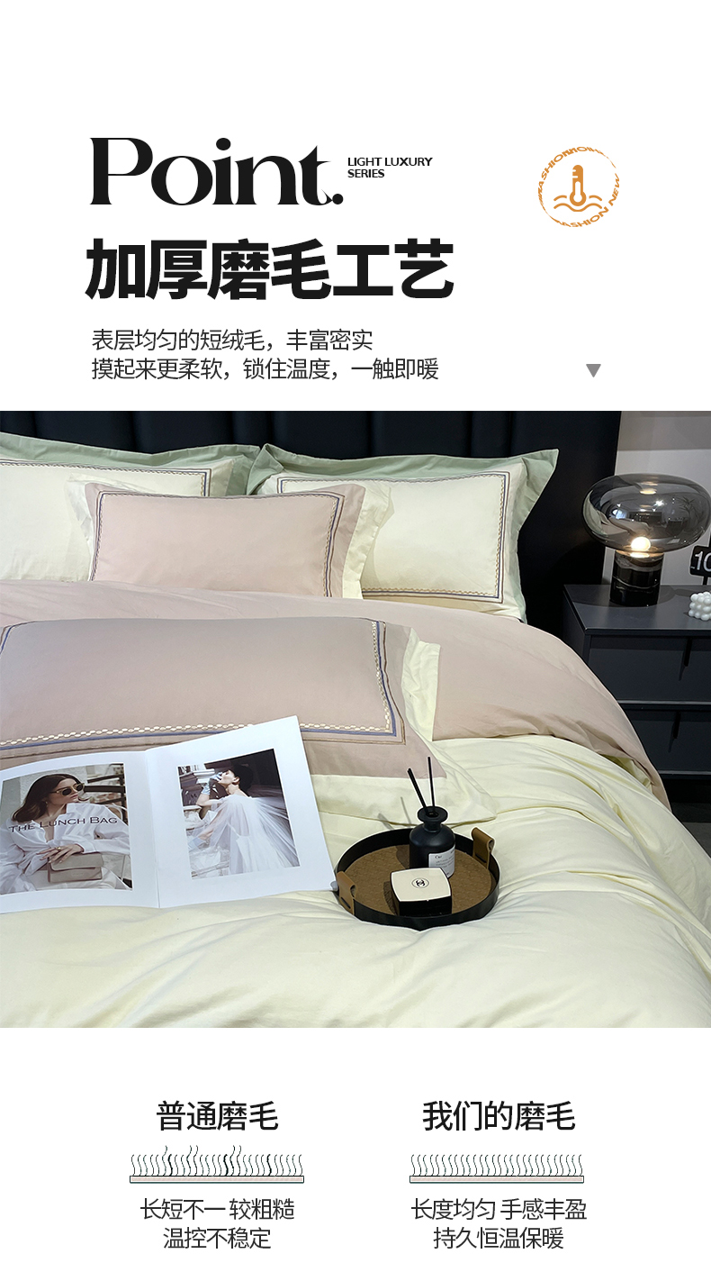 (总)懒猫家纺 2025新款亲肤舒适牛奶绒四件套-可可小姐系列,可可小姐-瓷白,可可小姐-水粉