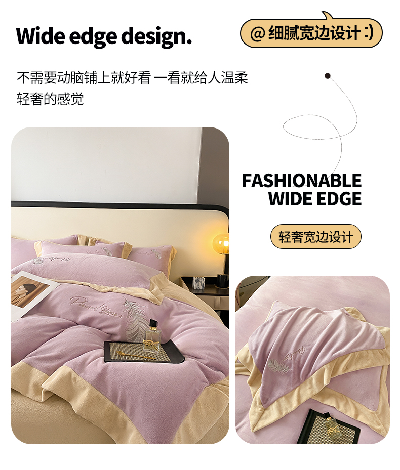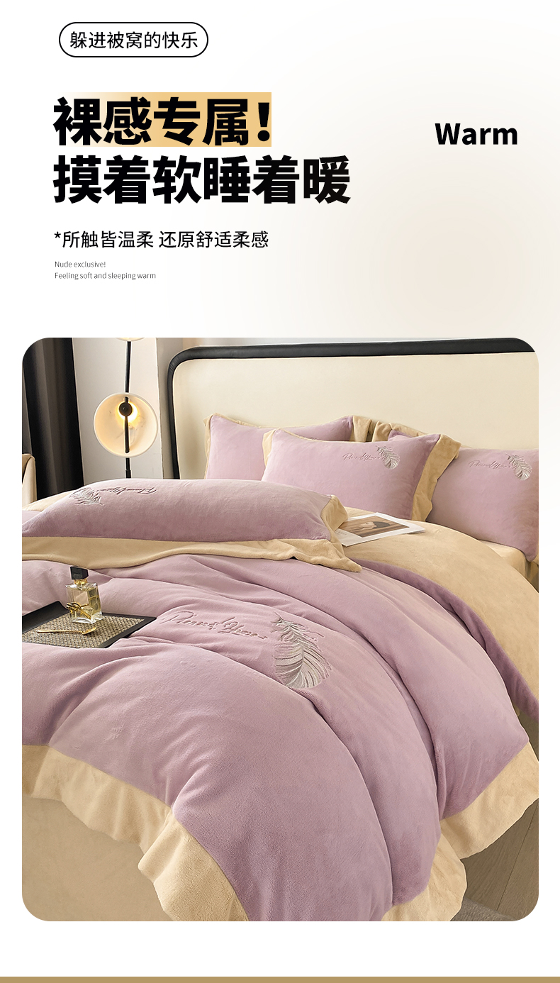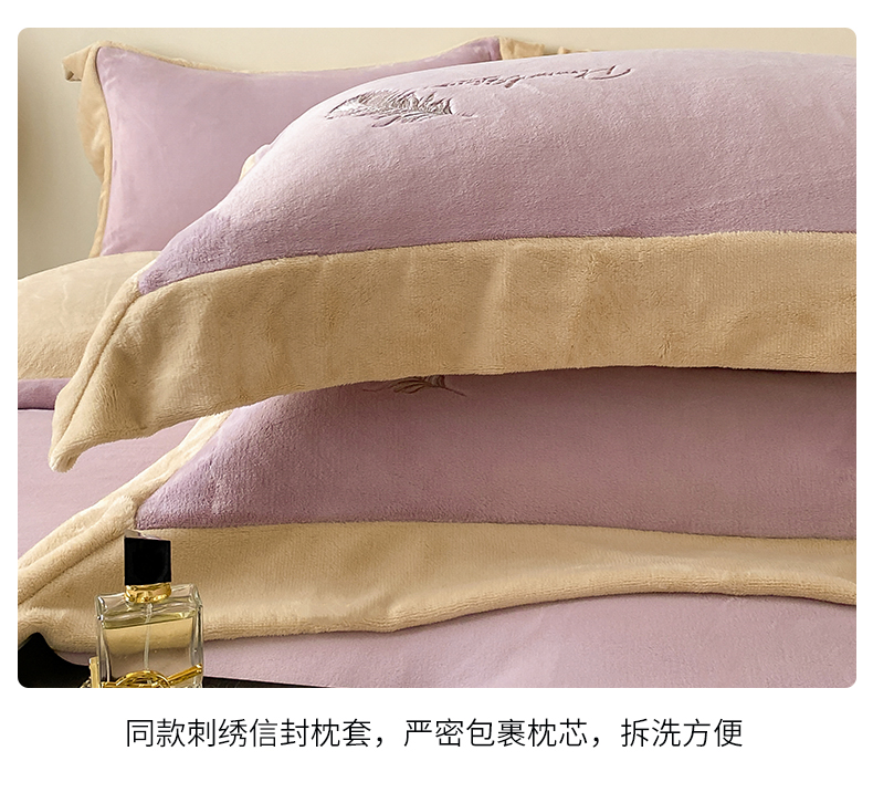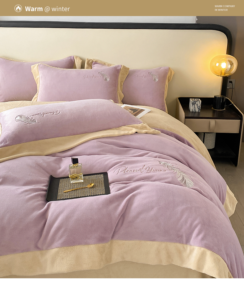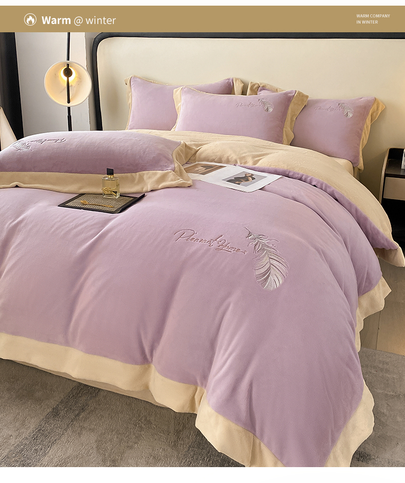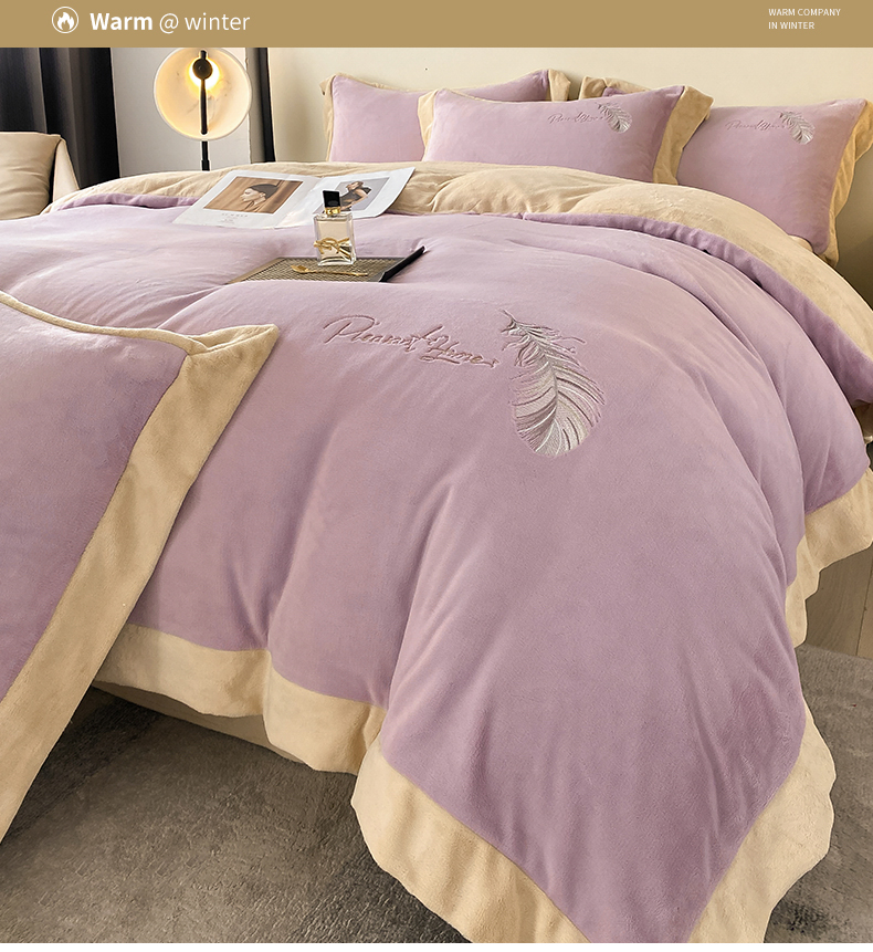 露梦家纺 2025新款加厚保暖牛奶绒刺绣款四件套-轻羽(风格二) 轻羽-风信紫