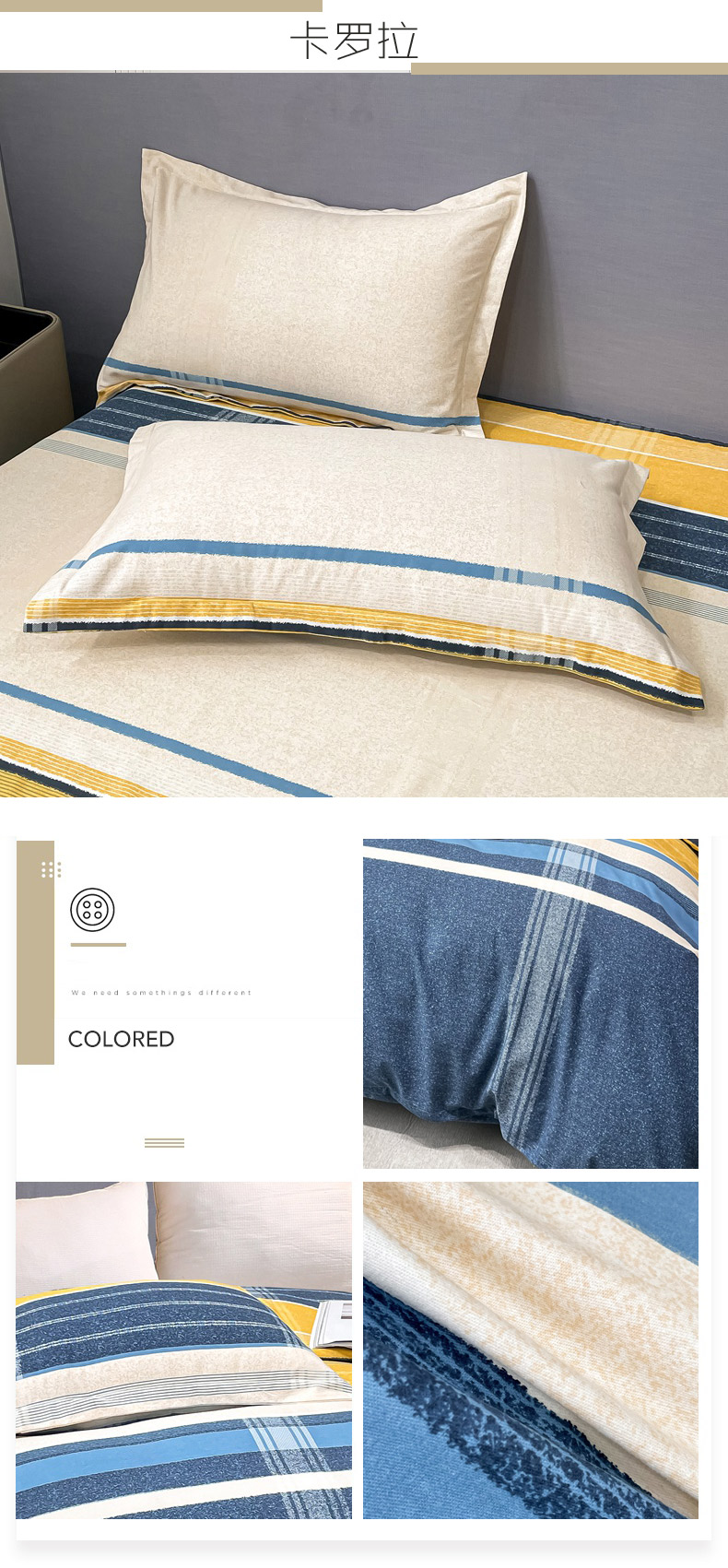 商品名称:晶缦家纺 2023新款风尚系全棉生态磨毛多规格单品枕套 卡罗拉