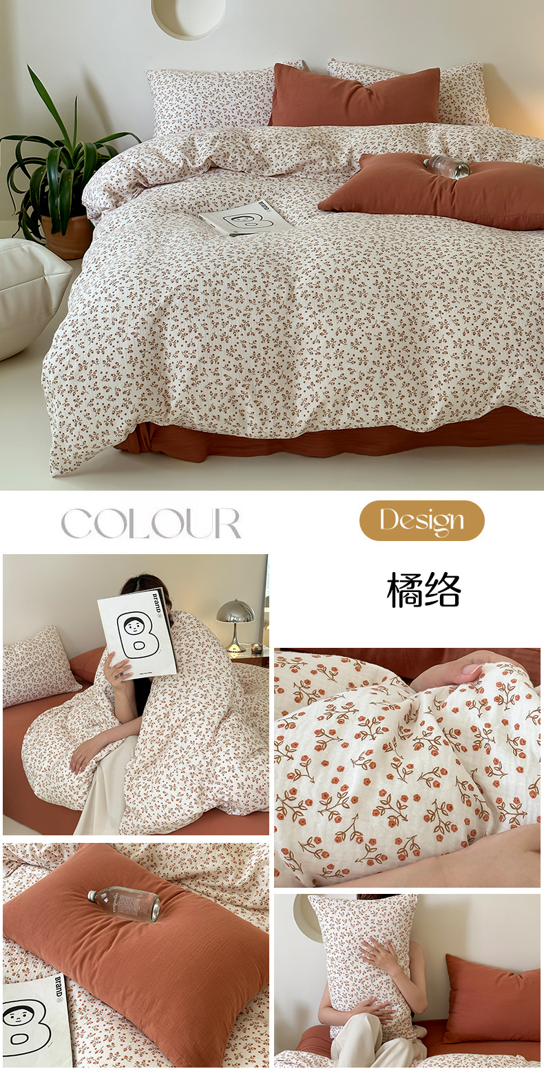 当前位置: 91家纺网 > 商品网购 > 床品套件 > 四件套 > 全棉普通四件套 > 山舍家居 2023新款全棉双层纱印花四件套 橘络