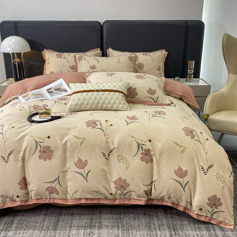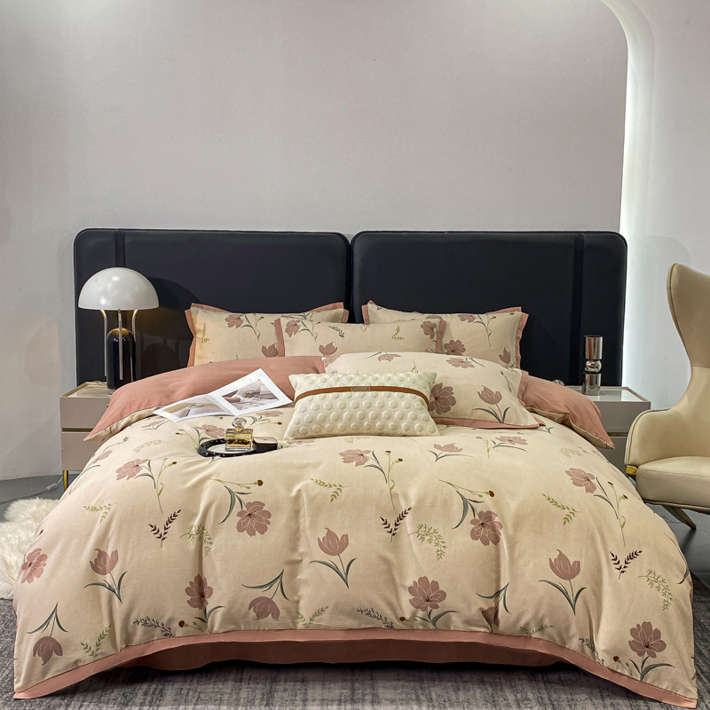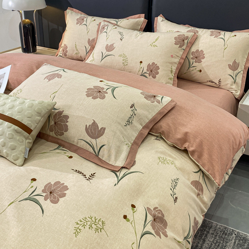 仟网汇 2023新款纯棉磨毛加厚喷气印花拼角四件套 蔓韵