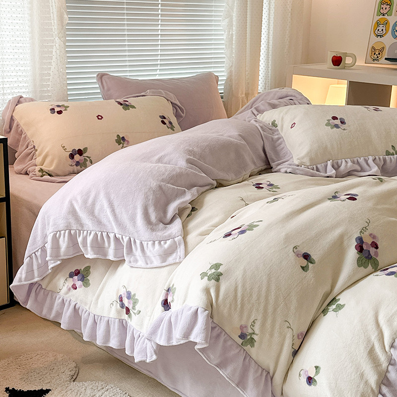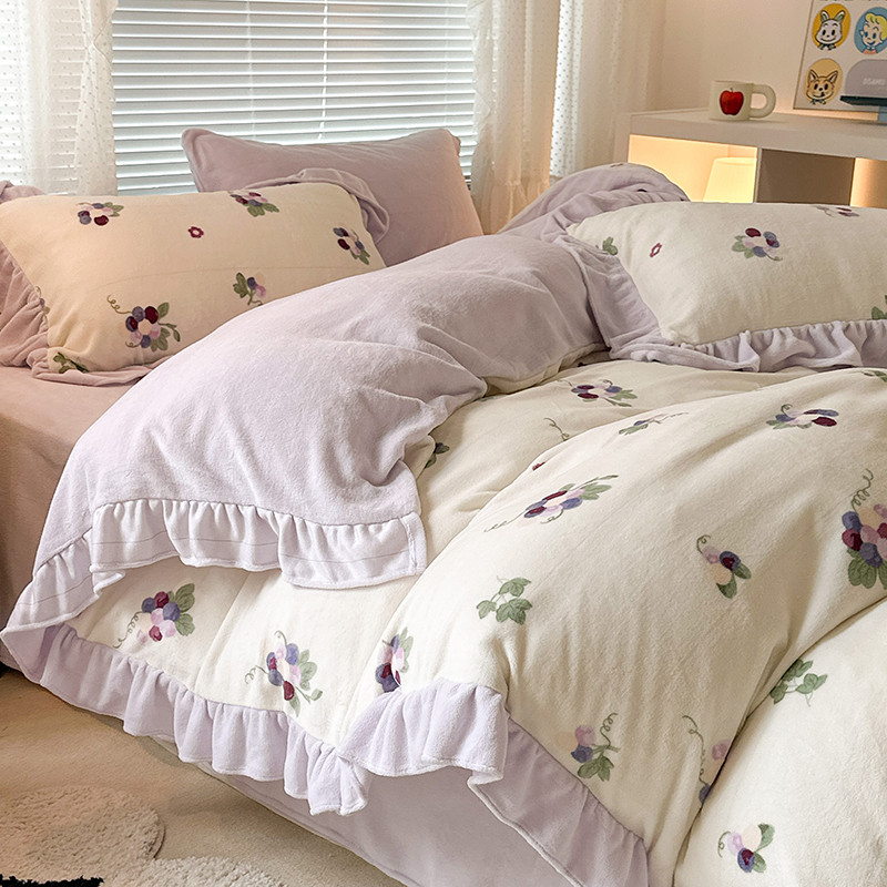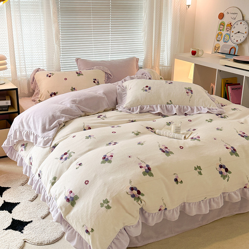 商品名称:昔可 2023新款韩系ins花边款牛奶绒四件套 紫色葡萄