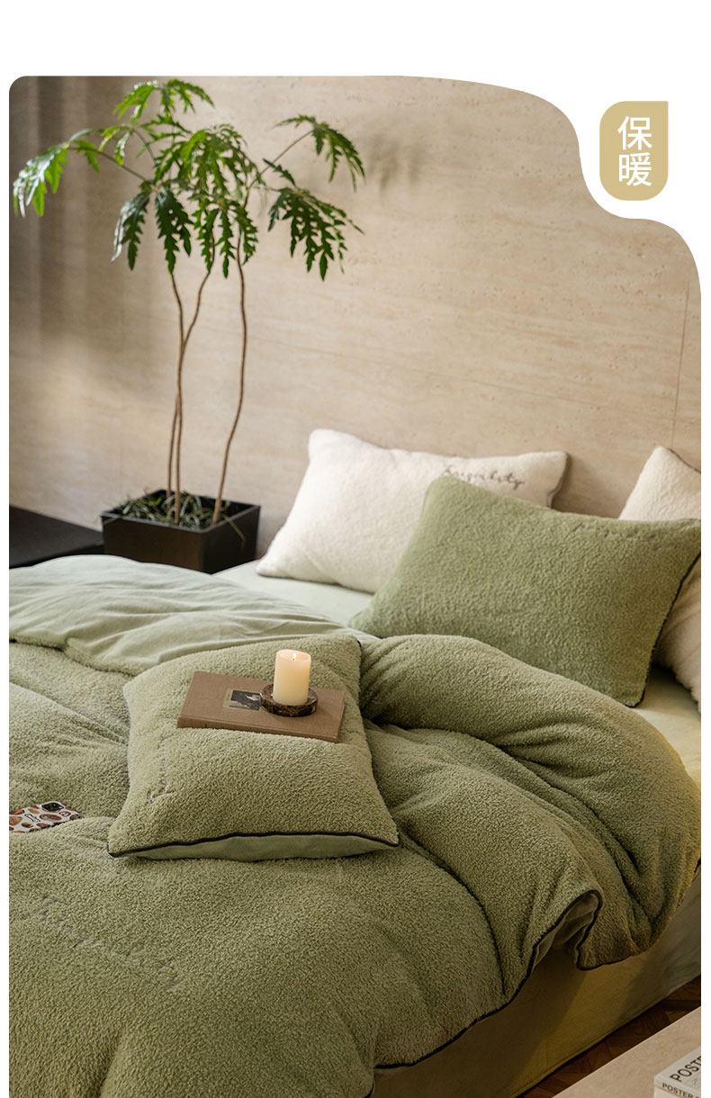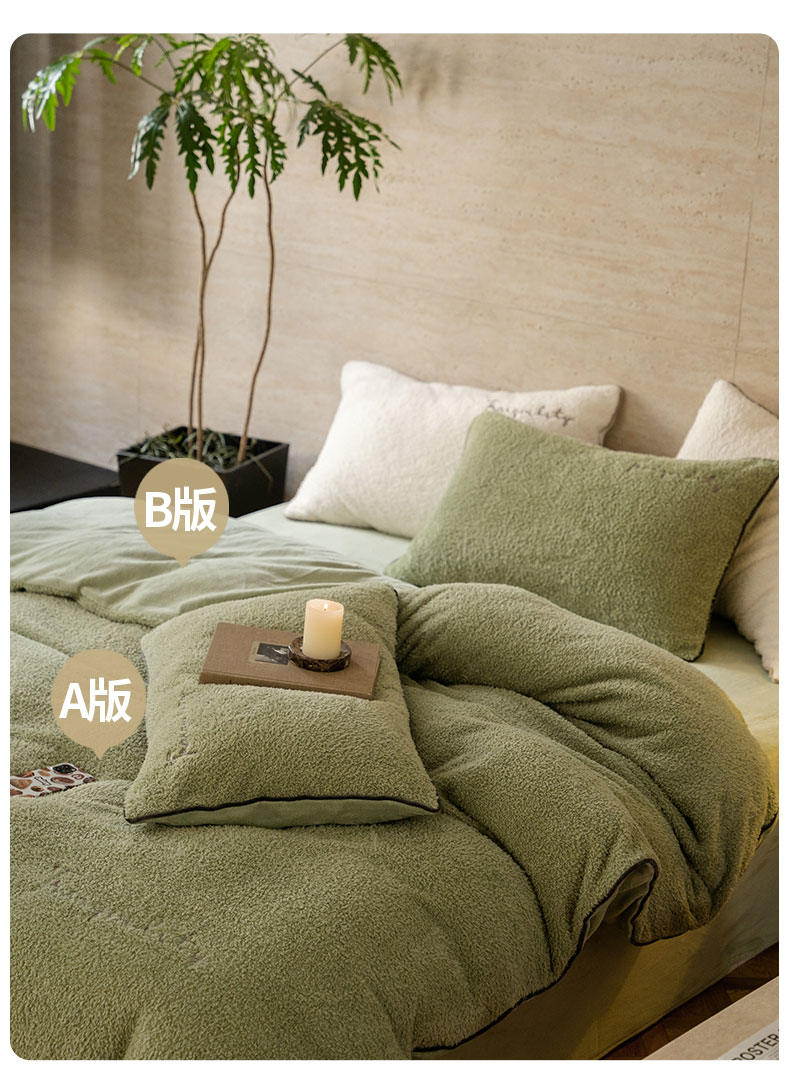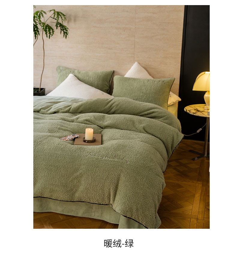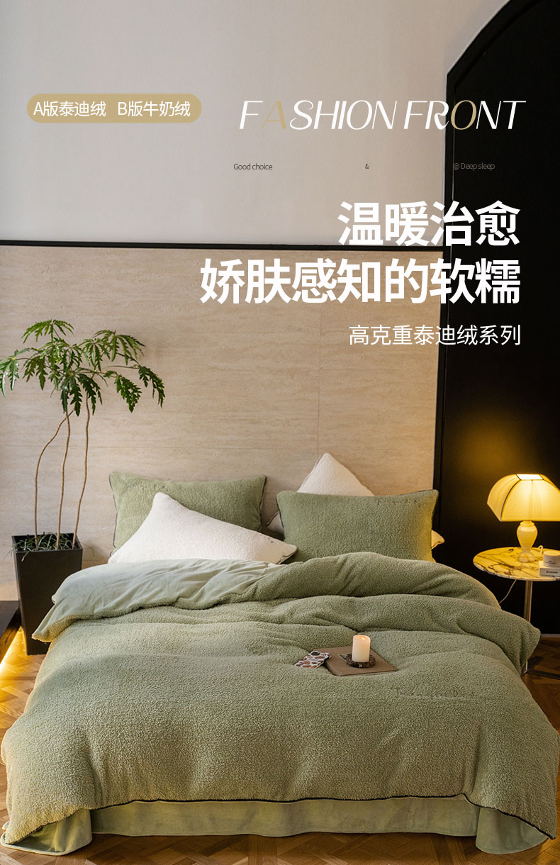 商品名称:FOR TWO家纺 2023新款AB版泰迪绒牛奶绒四件套 暖绒-绿