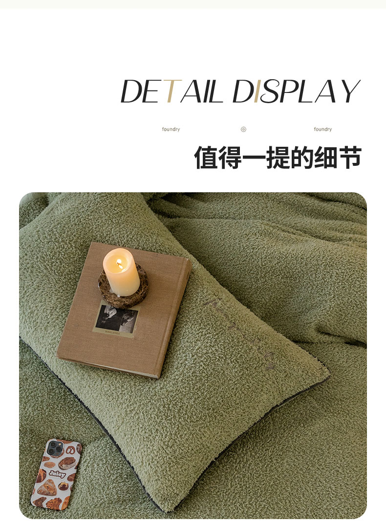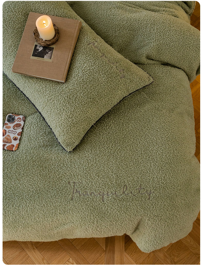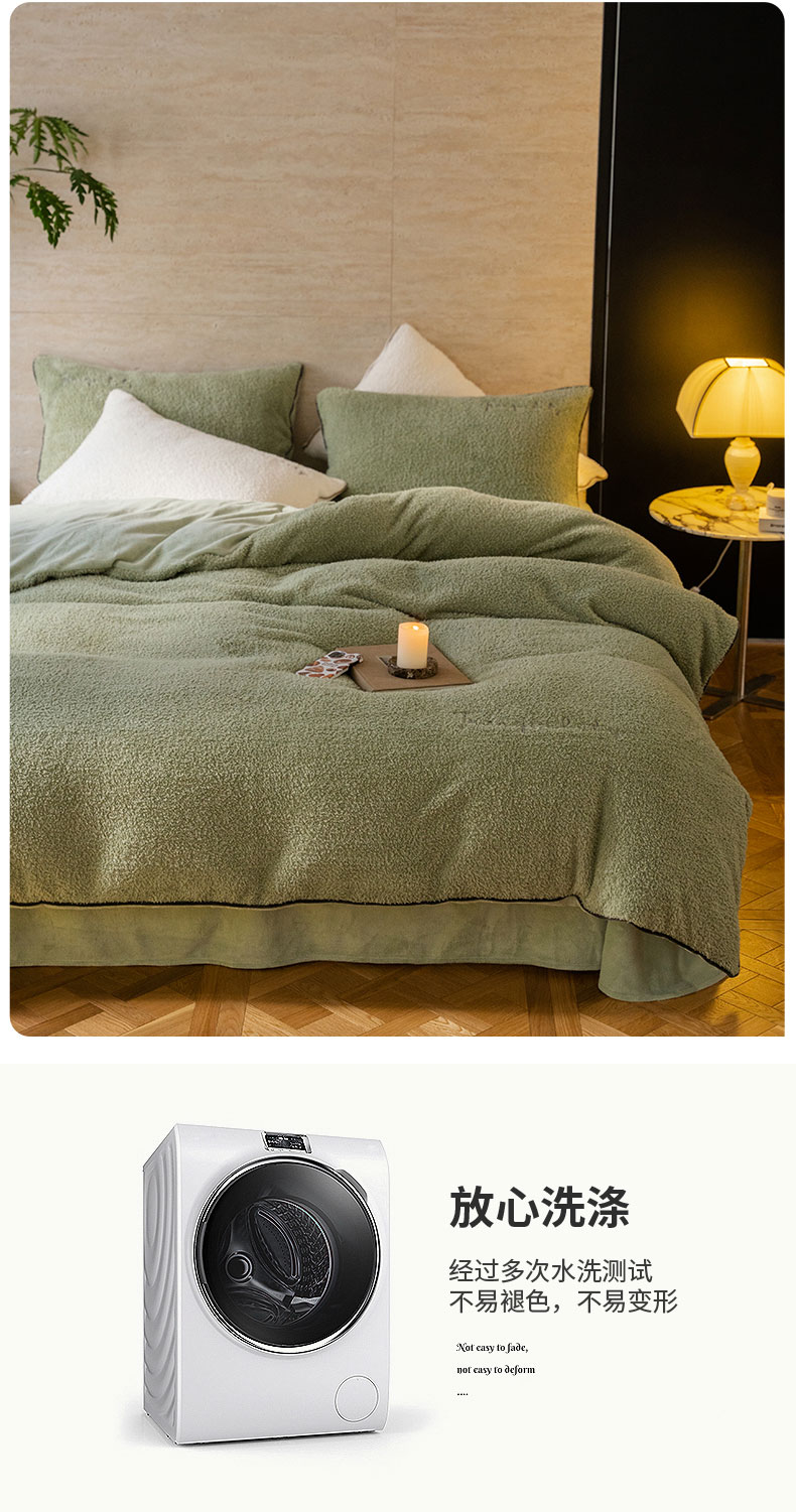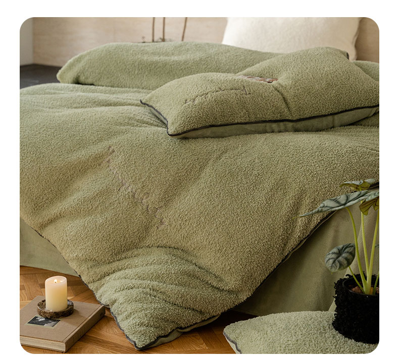 商品名称:FOR TWO家纺 2023新款AB版泰迪绒牛奶绒四件套 暖绒-绿