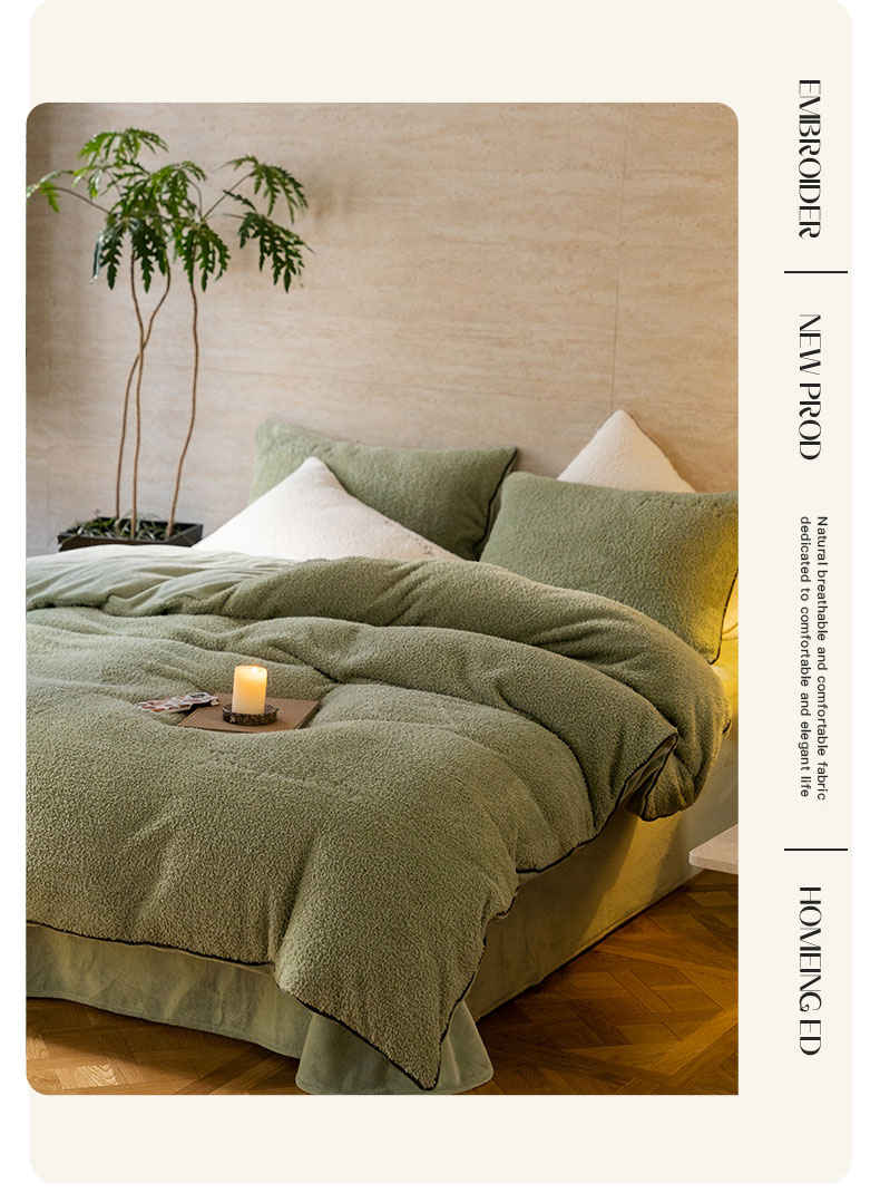 FOR TWO家纺 2023新款AB版泰迪绒牛奶绒四件套 暖绒-绿