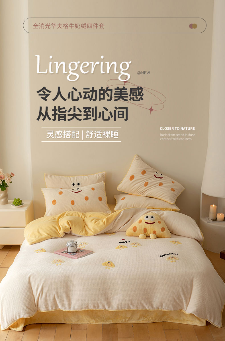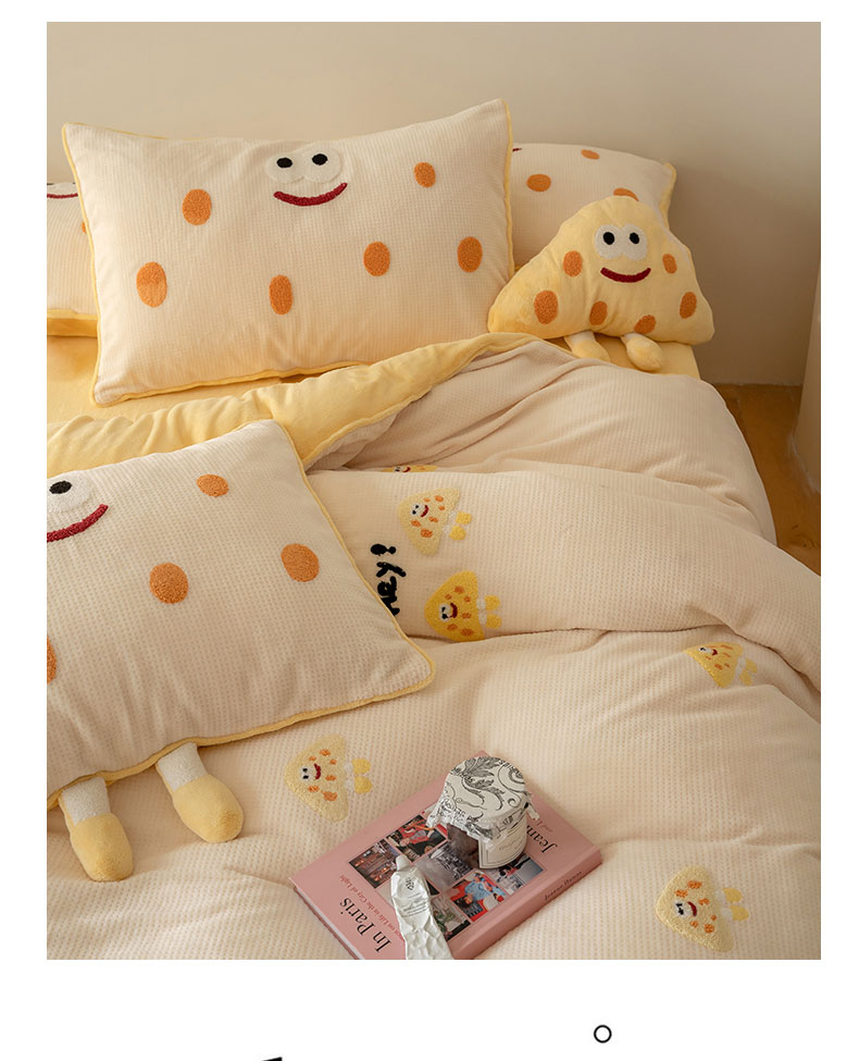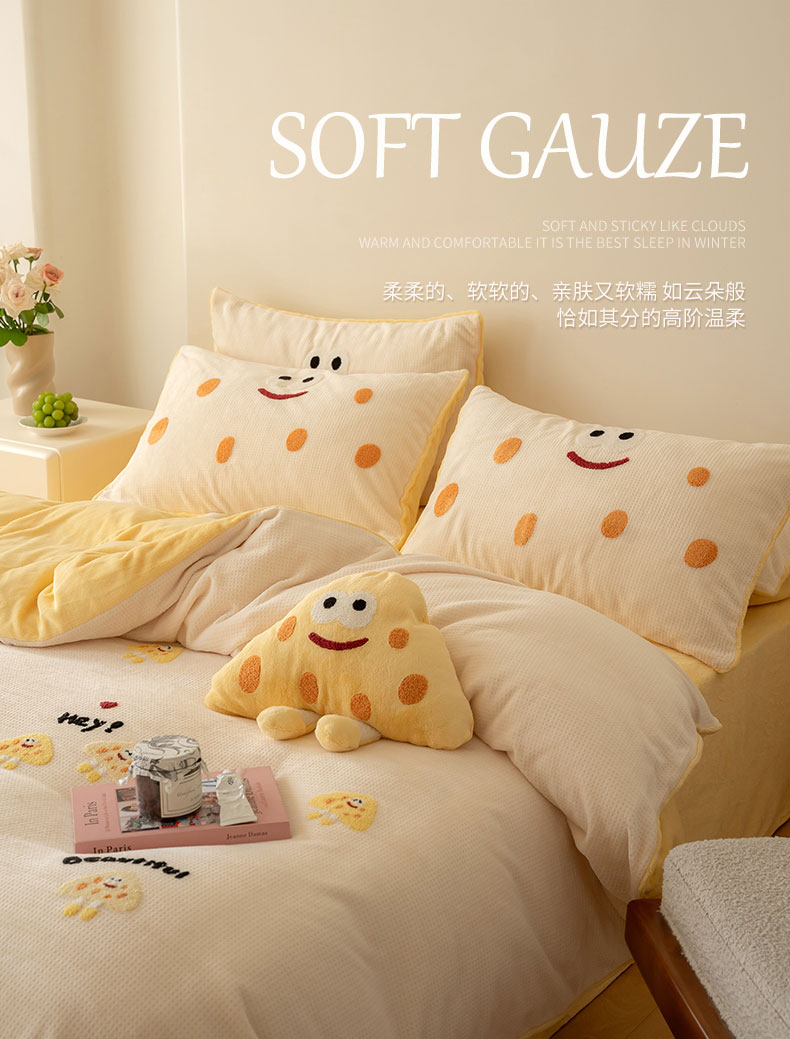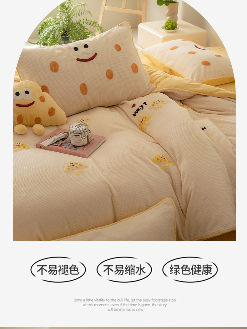 商品名称:FOR TWO家纺 2023新款牛奶绒华夫格毛巾绣系列四件套 奶酪棒