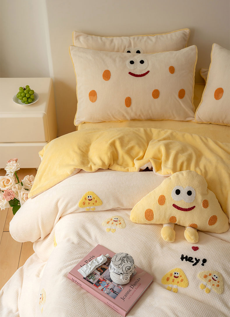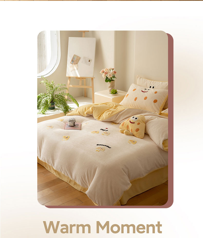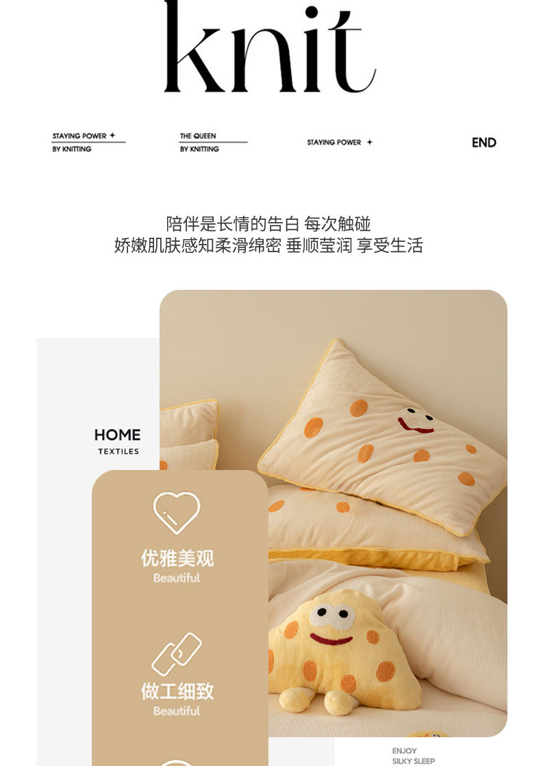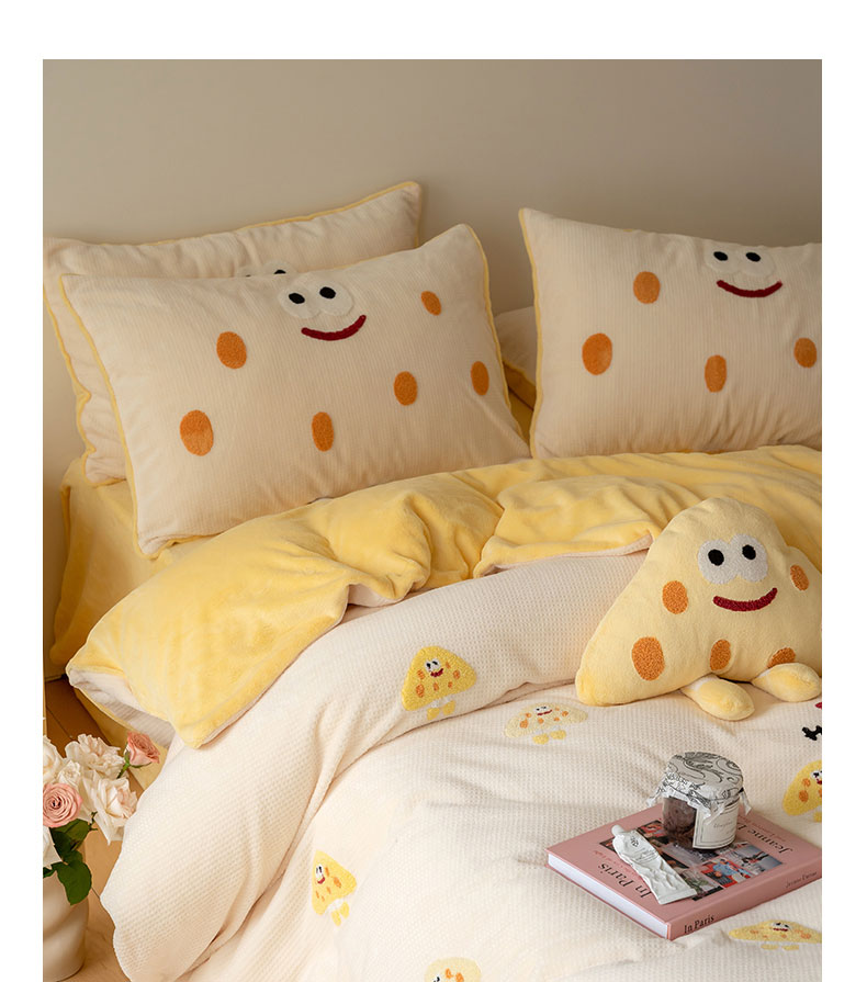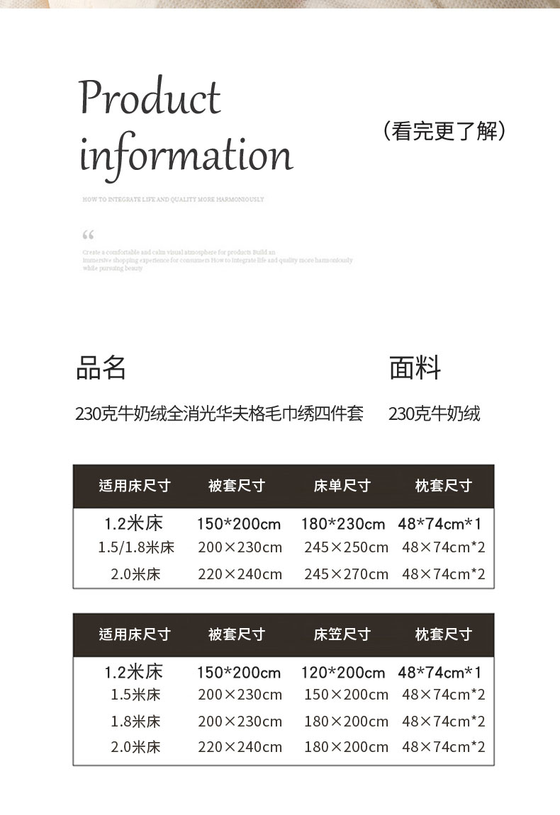 商品名称:FOR TWO家纺 2023新款牛奶绒华夫格毛巾绣系列四件套 奶酪棒