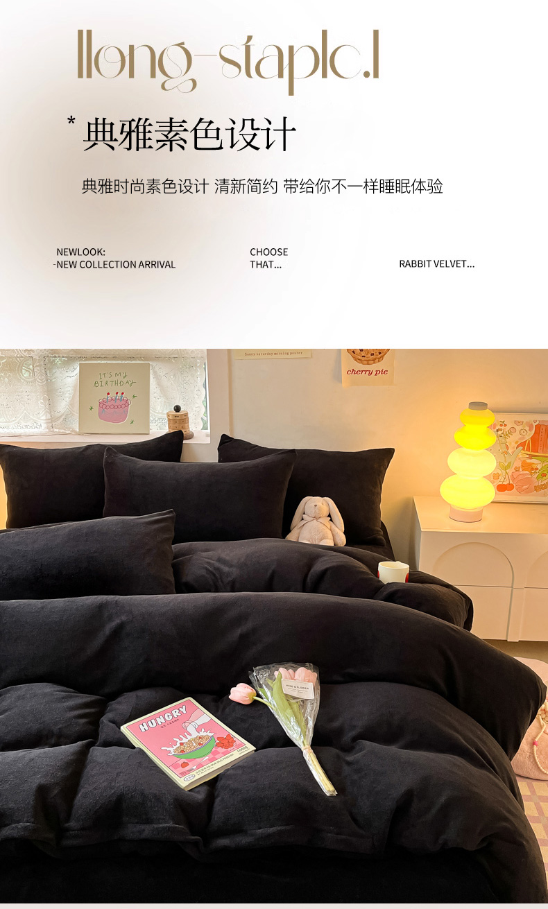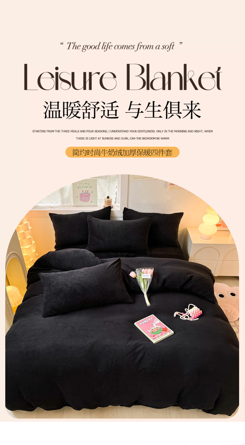 当前位置: 91家纺网 > 商品网购 > 床品套件 > 四件套 > 牛奶绒四件套 > 慕澄家纺 2023新款简约牛奶绒加厚保暖四件套-纯爱 纯爱-黑金