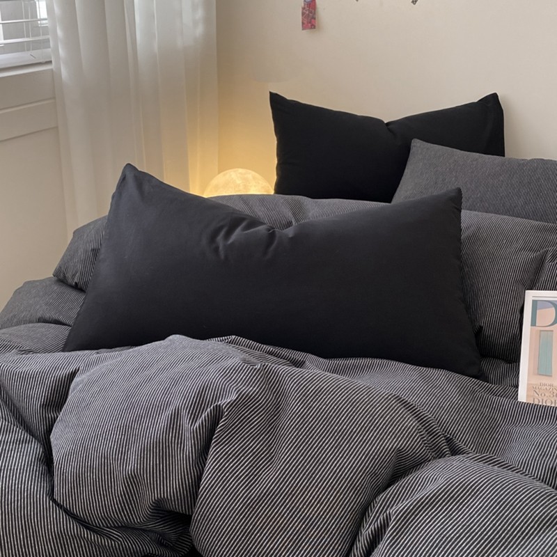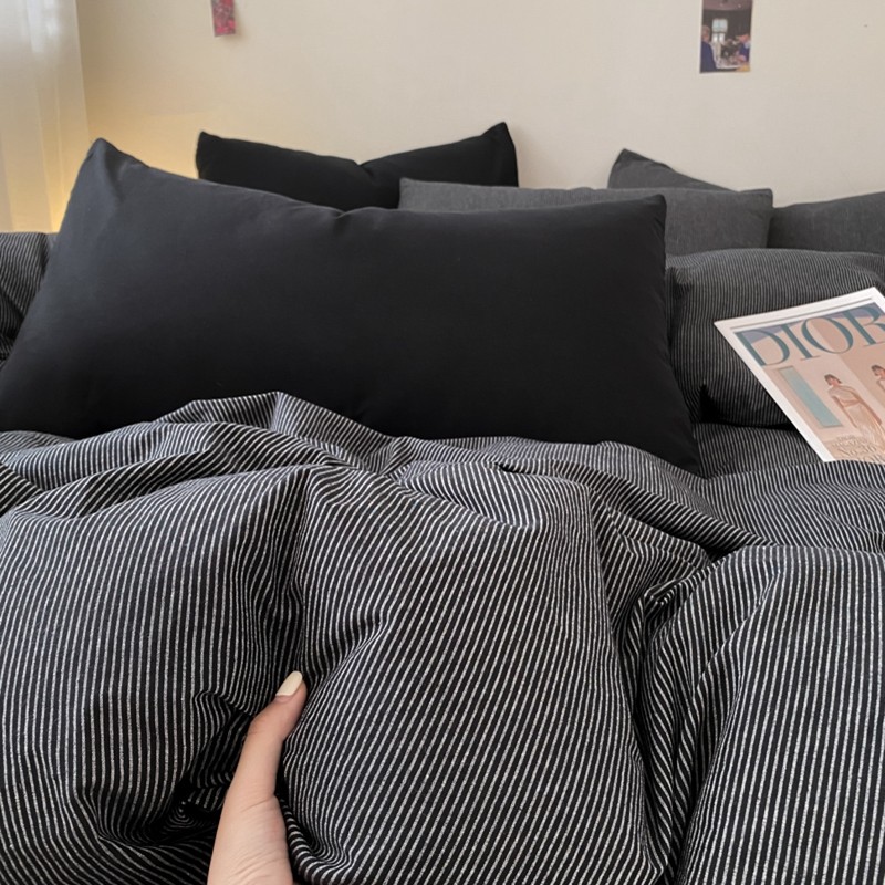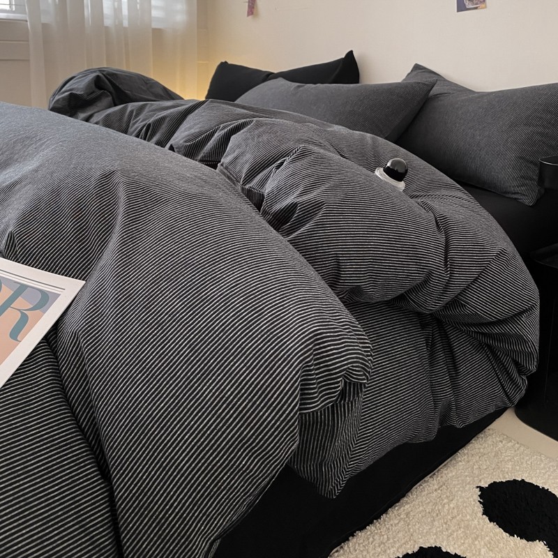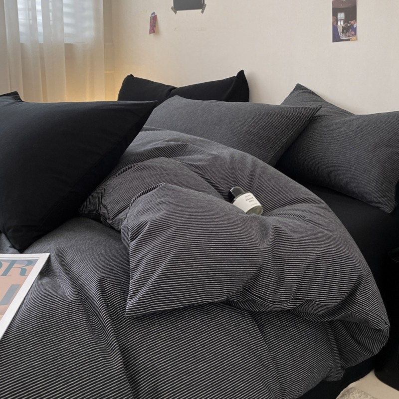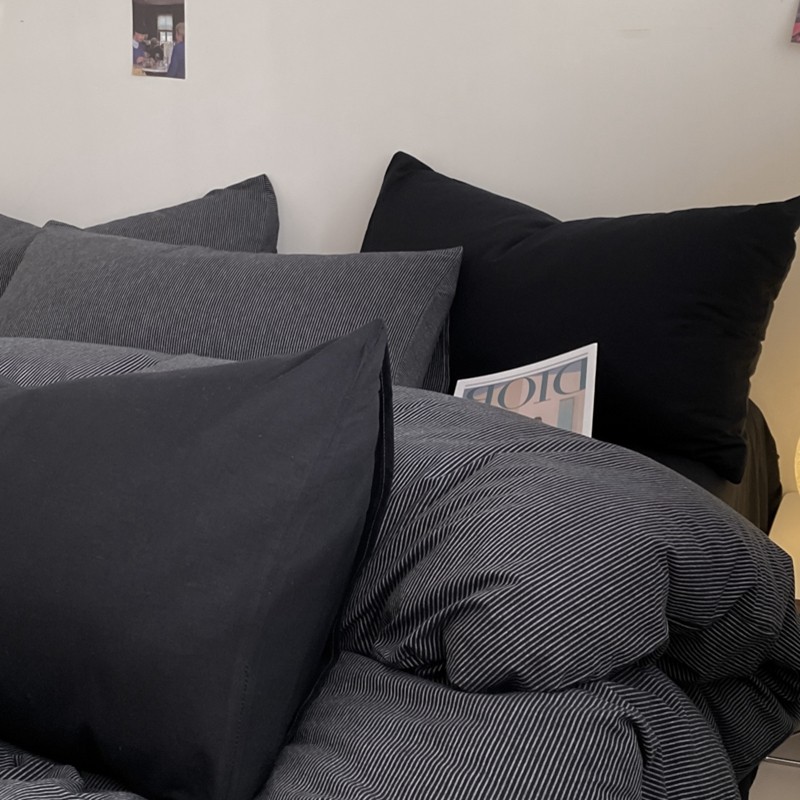 当前位置: 91家纺网 > 商品网购 > 床品套件 > 四件套 > 全棉普通四件套 > 柠萌家居 2023新款全棉色织暗黑黑色条纹四件套 黑极细条