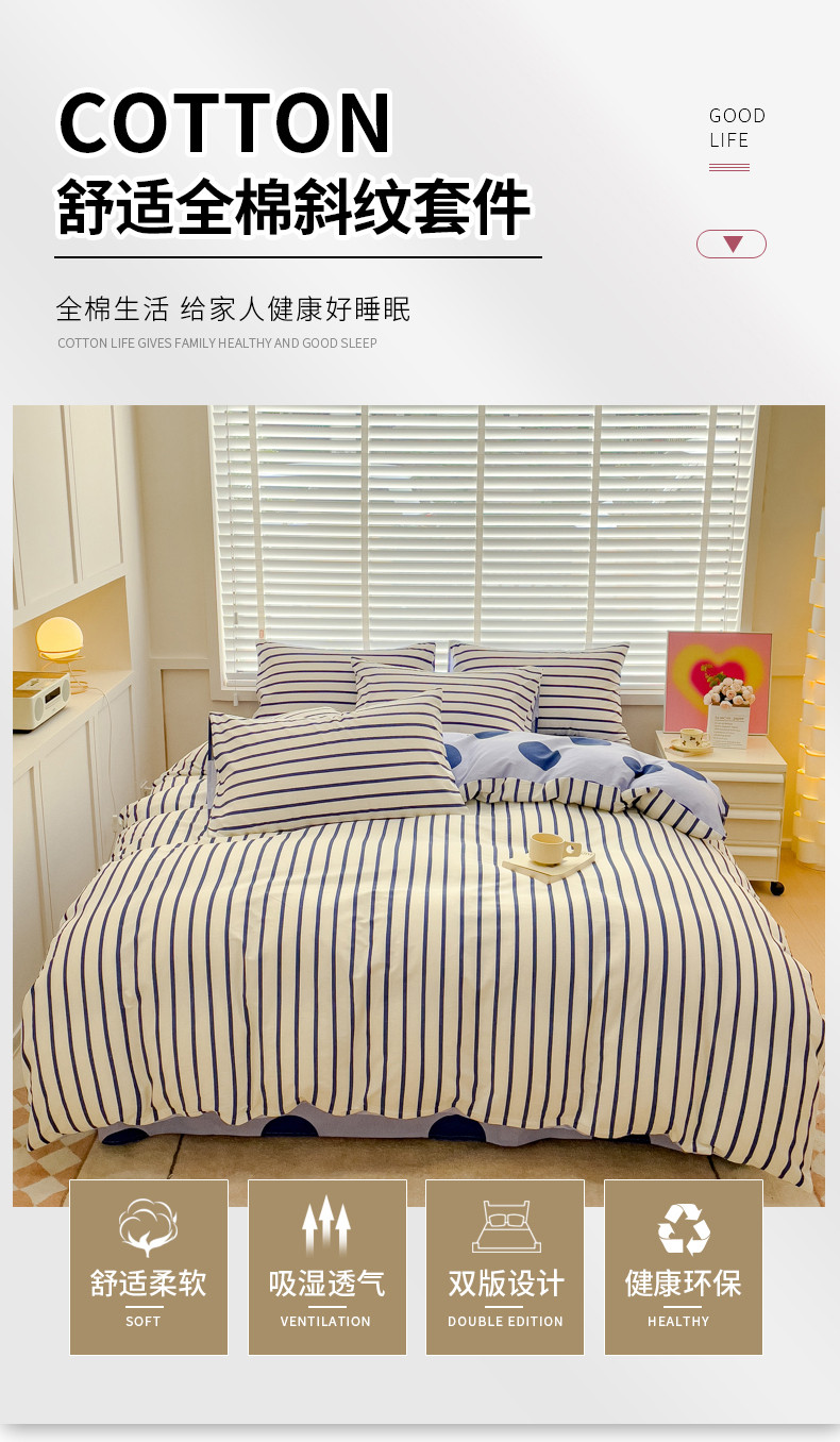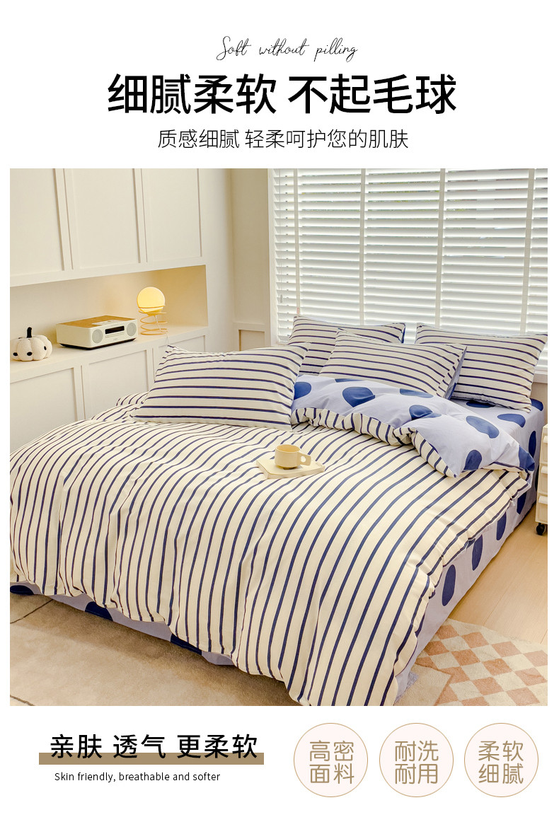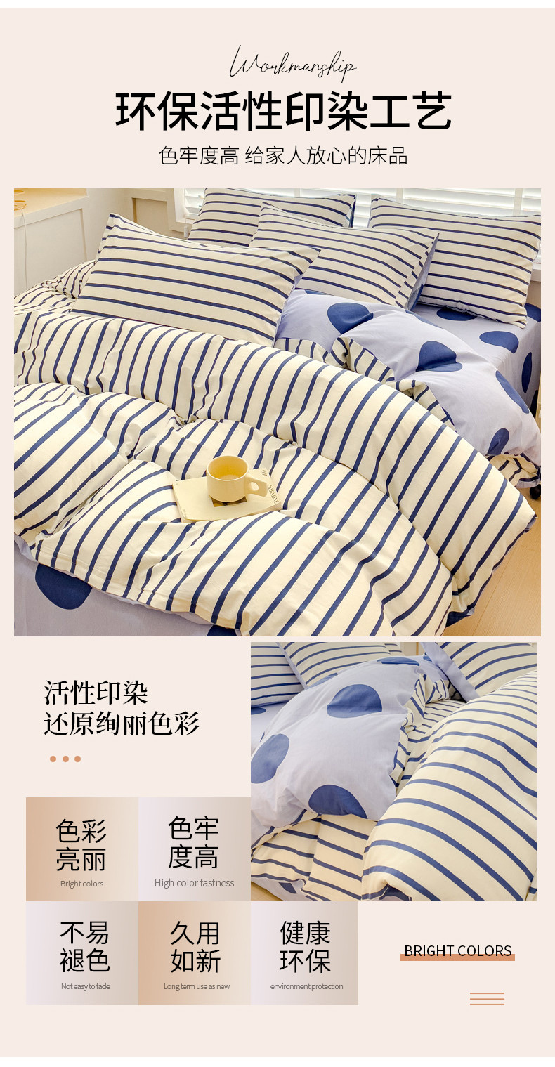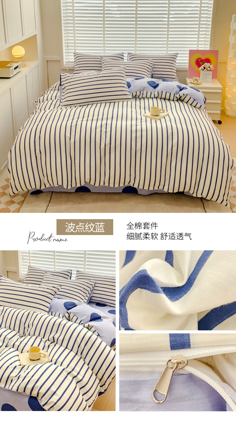 当前位置: 91家纺网 > 商品网购 > 床品套件 > 四件套 > 全棉普通四件套 > 金丝鸟 2023新款全棉可爱卡通印花小清新四件套-第一批 波点纹蓝