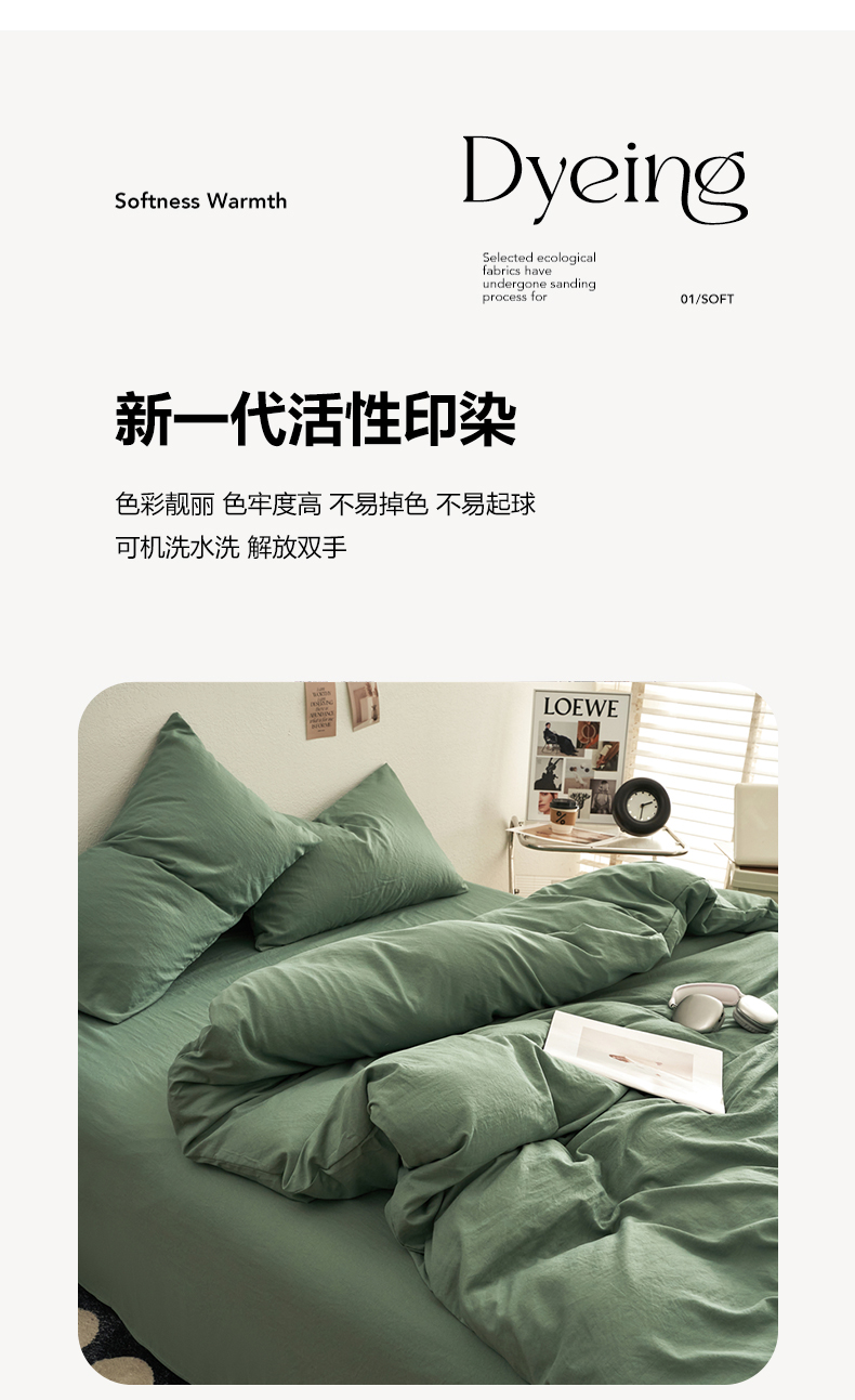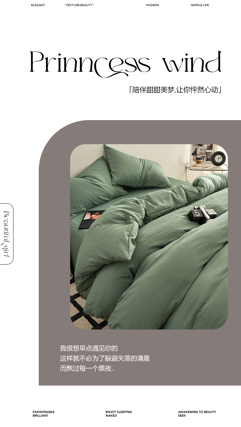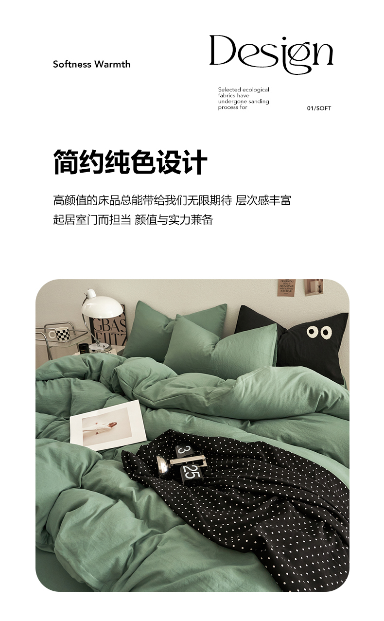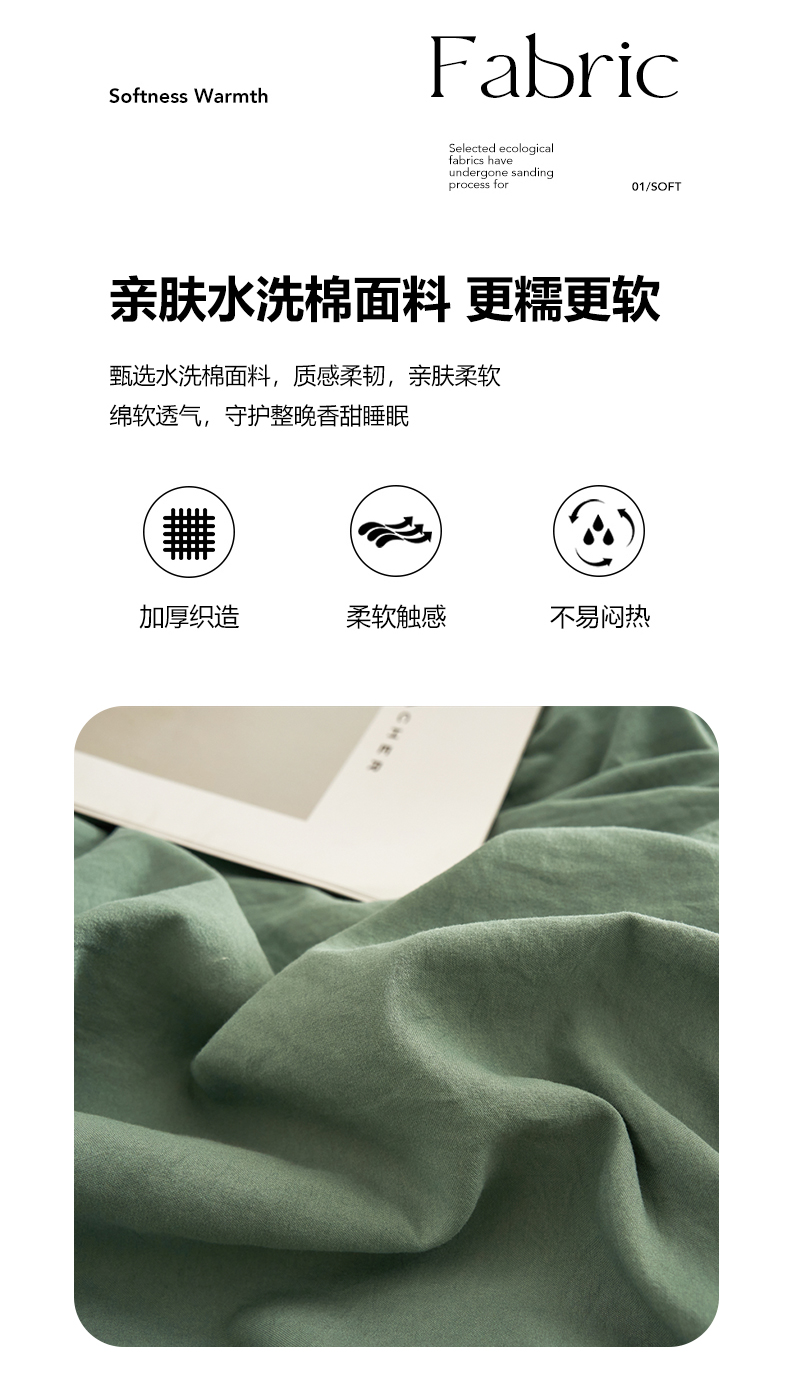 当前位置: 91家纺网 > 商品网购 > 床品套件 > 四件套 > 水洗棉四件套 > 卡迪熊家纺 2024新款ins风超柔褶皱亲肤磨毛水洗m四件套纯色系列 清新绿