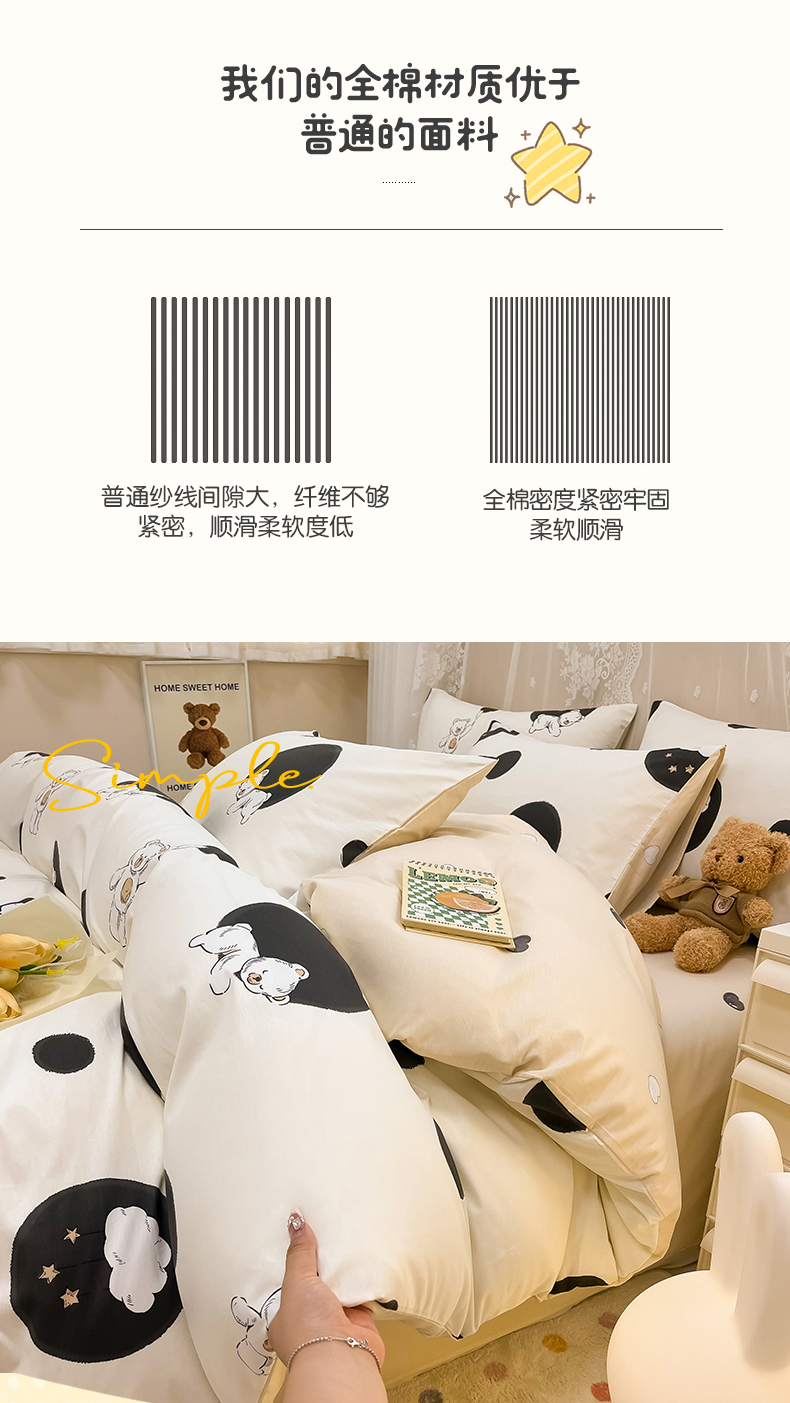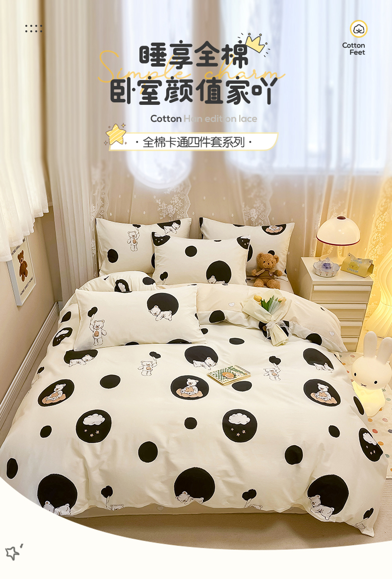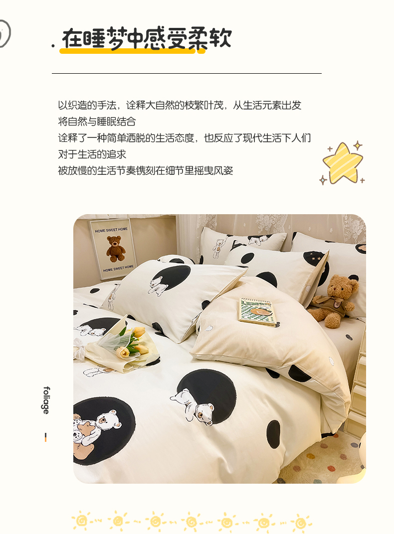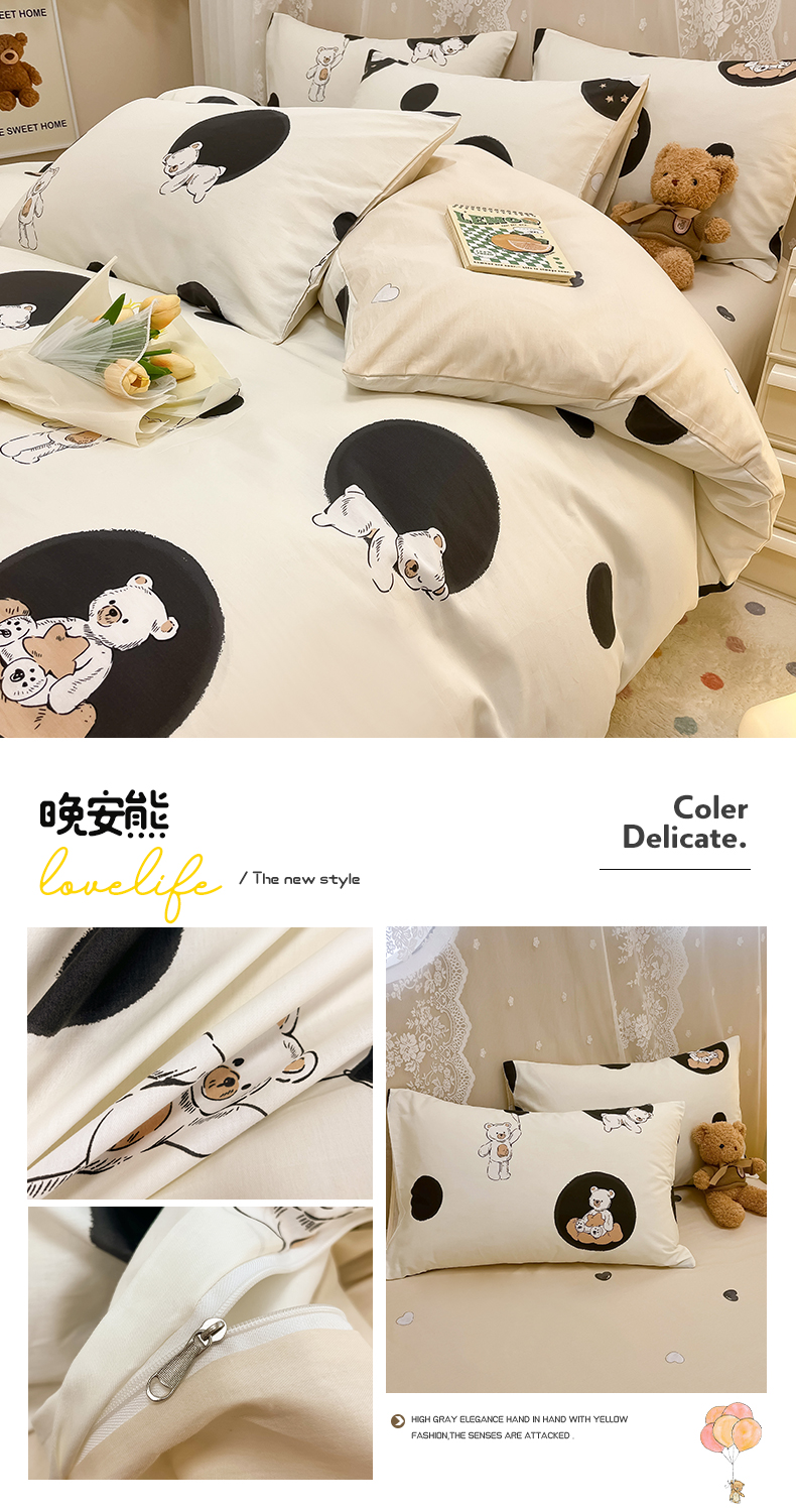 当前位置: 91家纺网 > 商品网购 > 床品套件 > 四件套 > 全棉普通四件套 > 小懒猪 2024春夏新款全棉卡通印花四件套 晚安熊