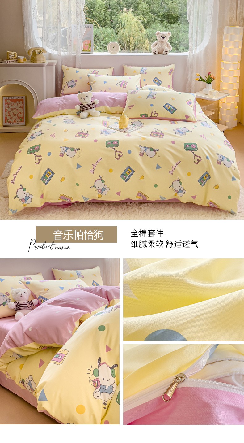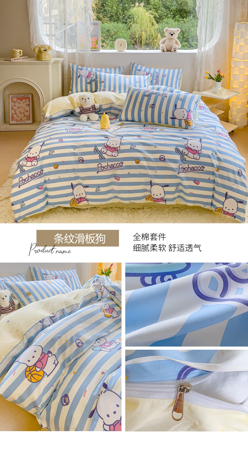 (总)金丝鸟家纺 2023新款全棉印花可爱卡通帕恰狗四件套