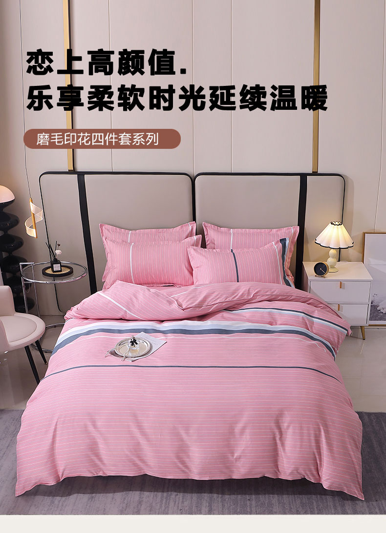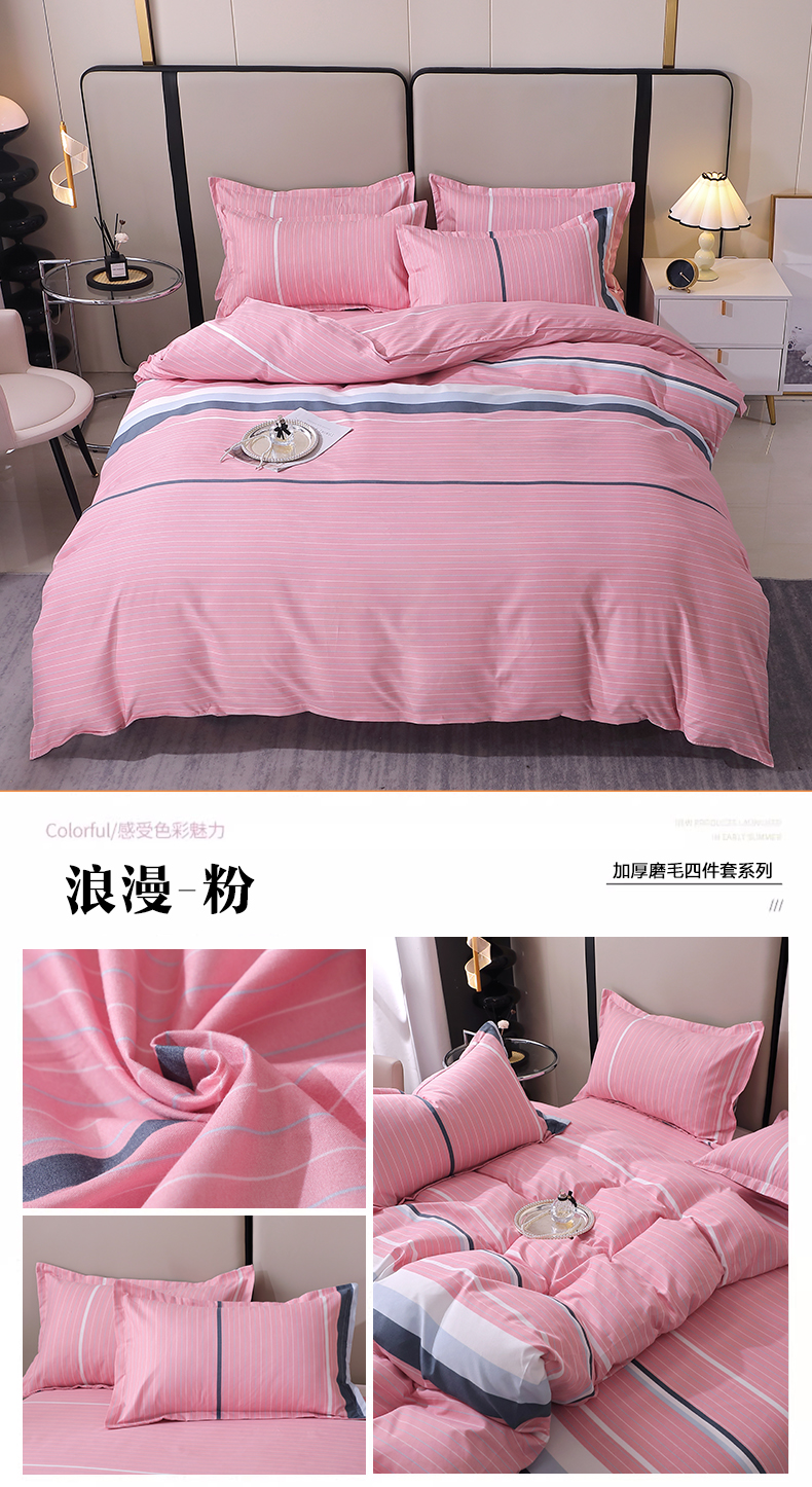 商品名称:北部居 2024新款加厚化纤四件套 浪漫-粉