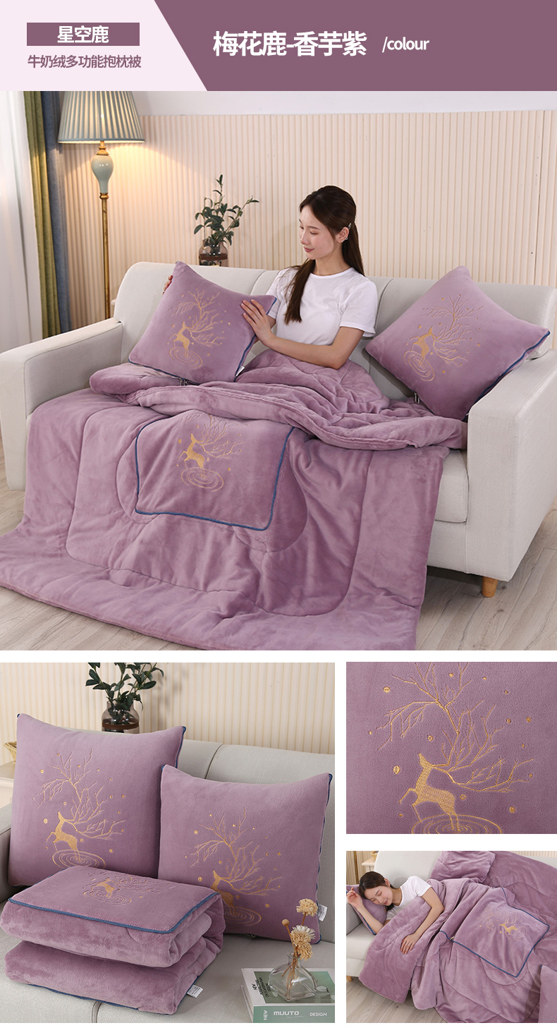 商品名称:吉利家居 2024新款牛奶绒星空鹿多功能抱枕 梅花鹿-香芋紫