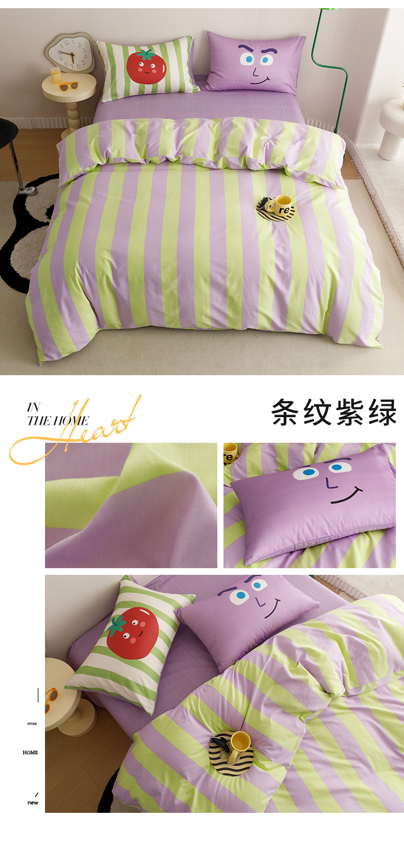 商品名称:珺柔家纺 2024年款13070全棉数码印花四件套 条纹紫绿