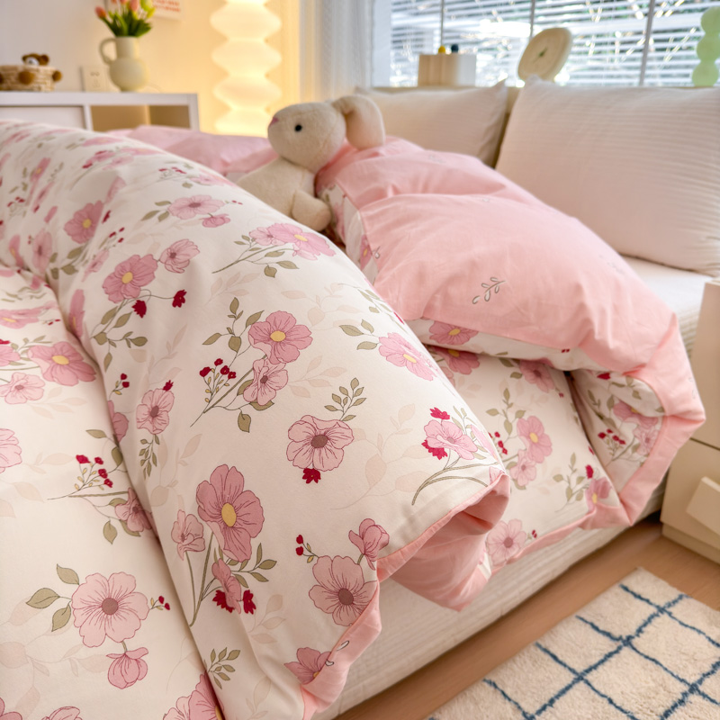 清雅福 2024新款全棉13372小清新单被套系列第三季 花漫蹊粉