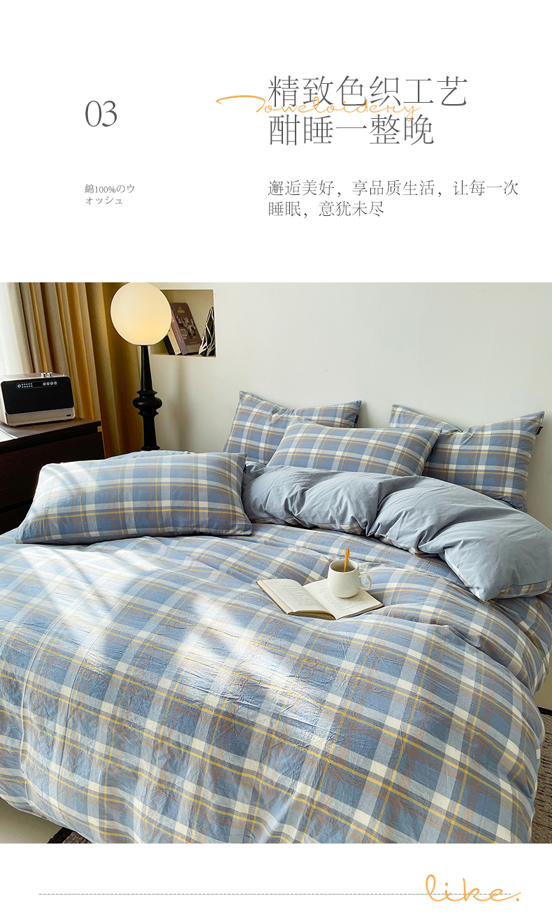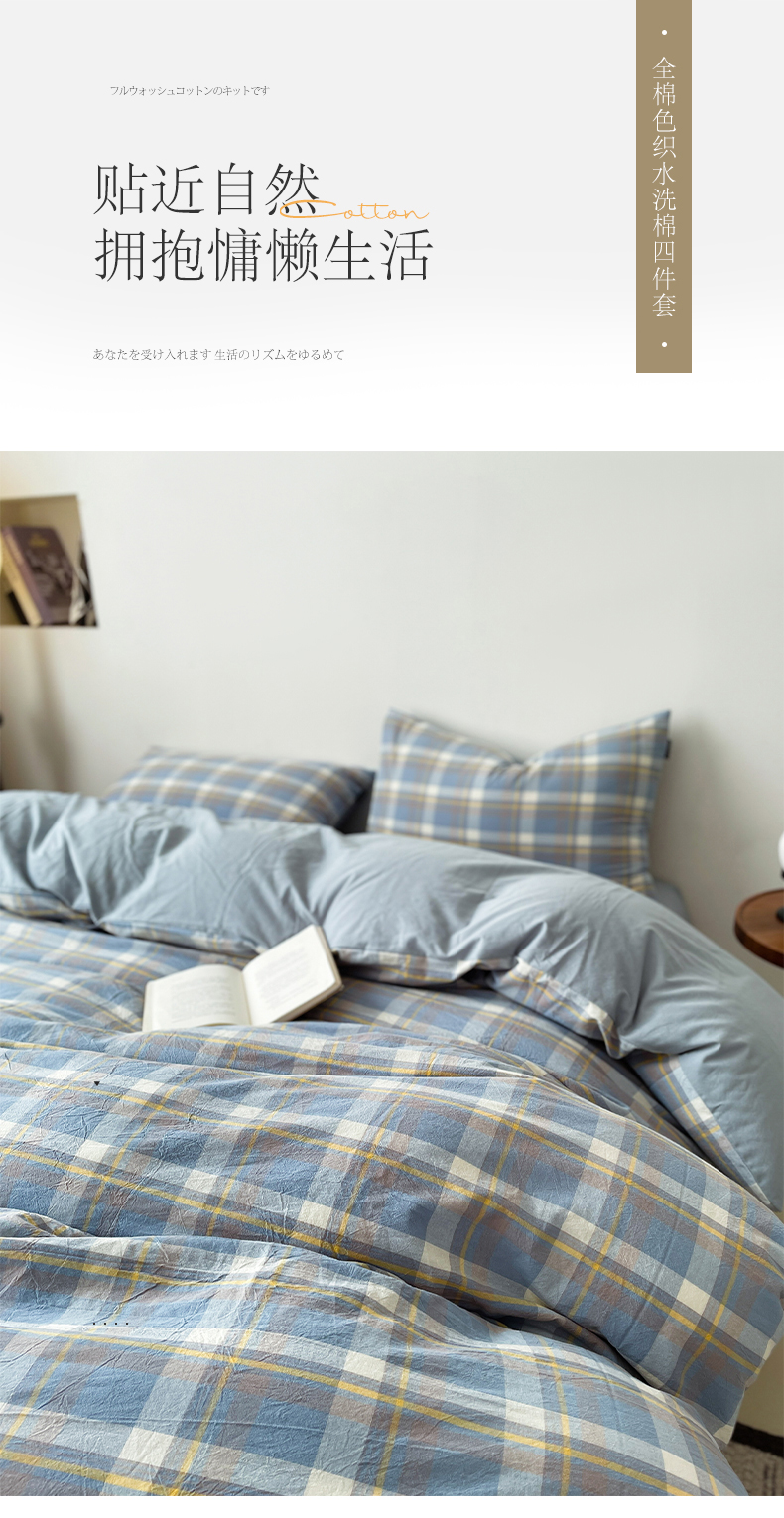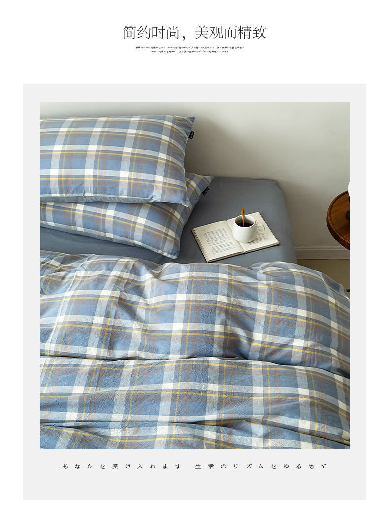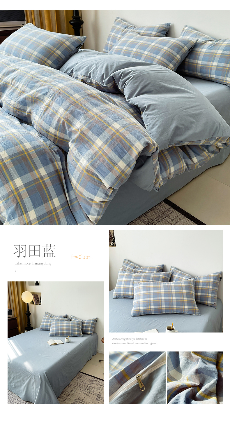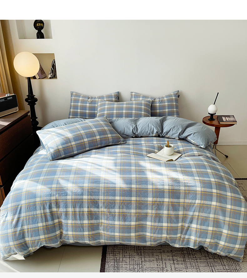 商品名称:小懒猪 2024新款色织水洗棉格子款四件套 羽田蓝
