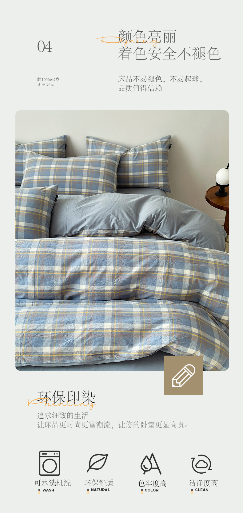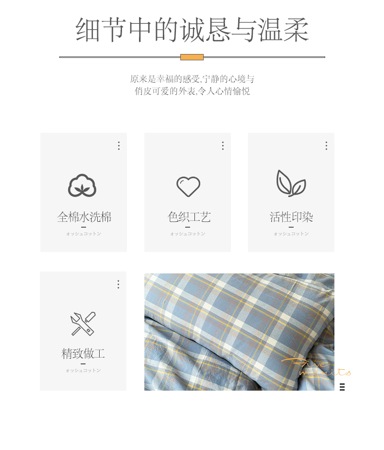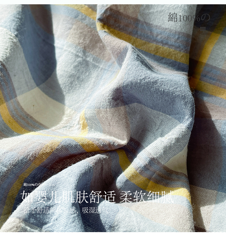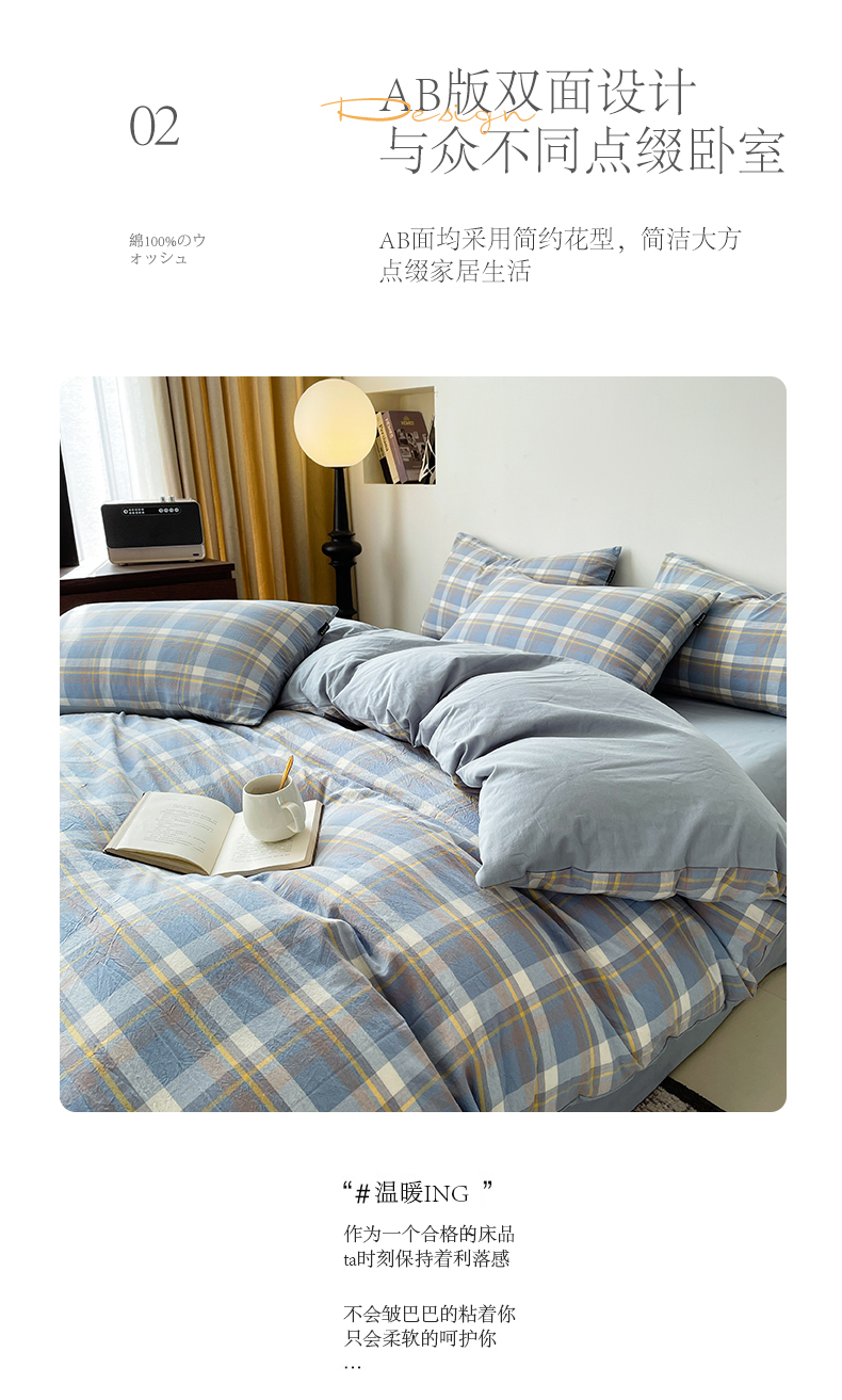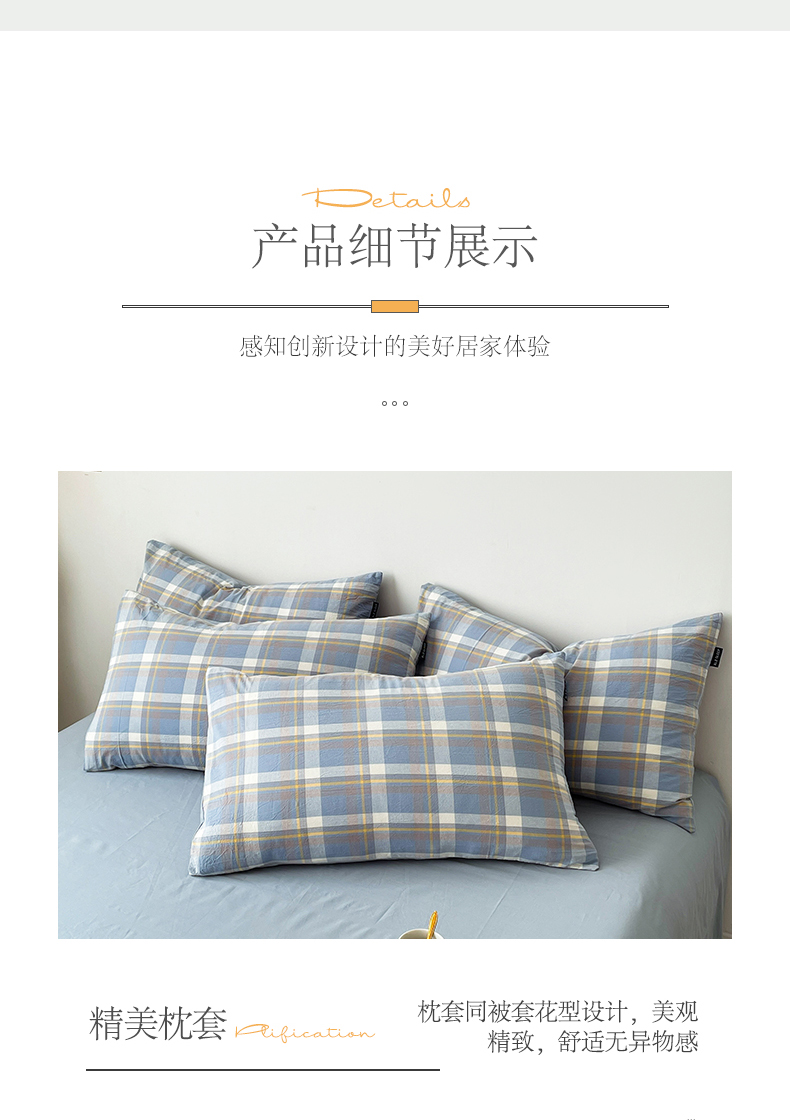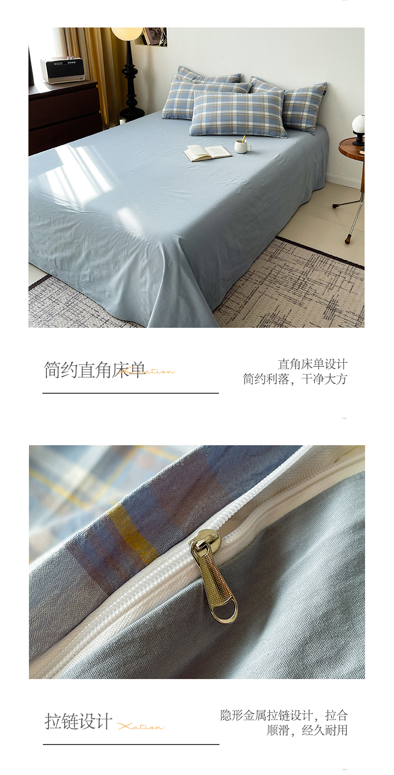 商品名称:小懒猪 2024新款色织水洗棉格子款四件套 羽田蓝