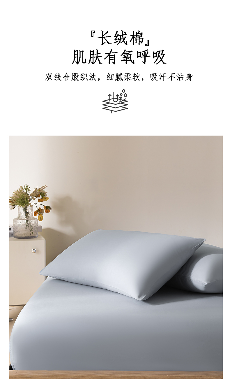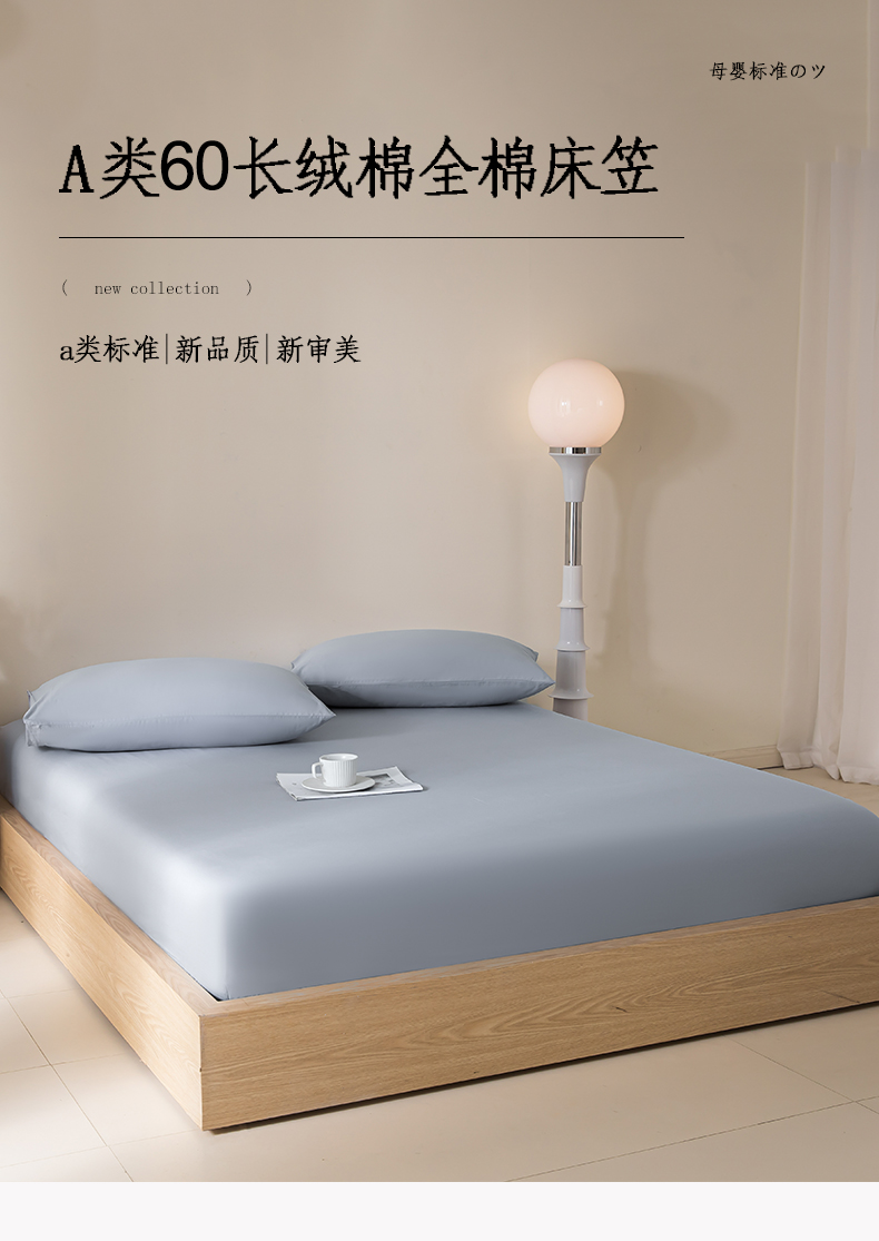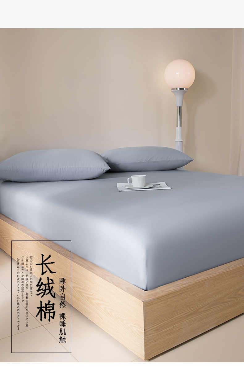 卧趣家纺 2024新品A类全棉长绒棉单品床笠 薄雾蓝