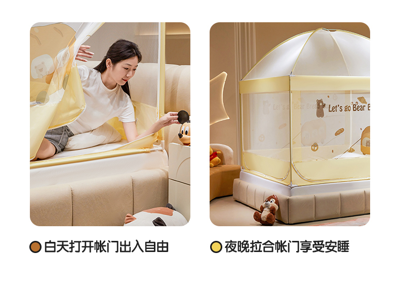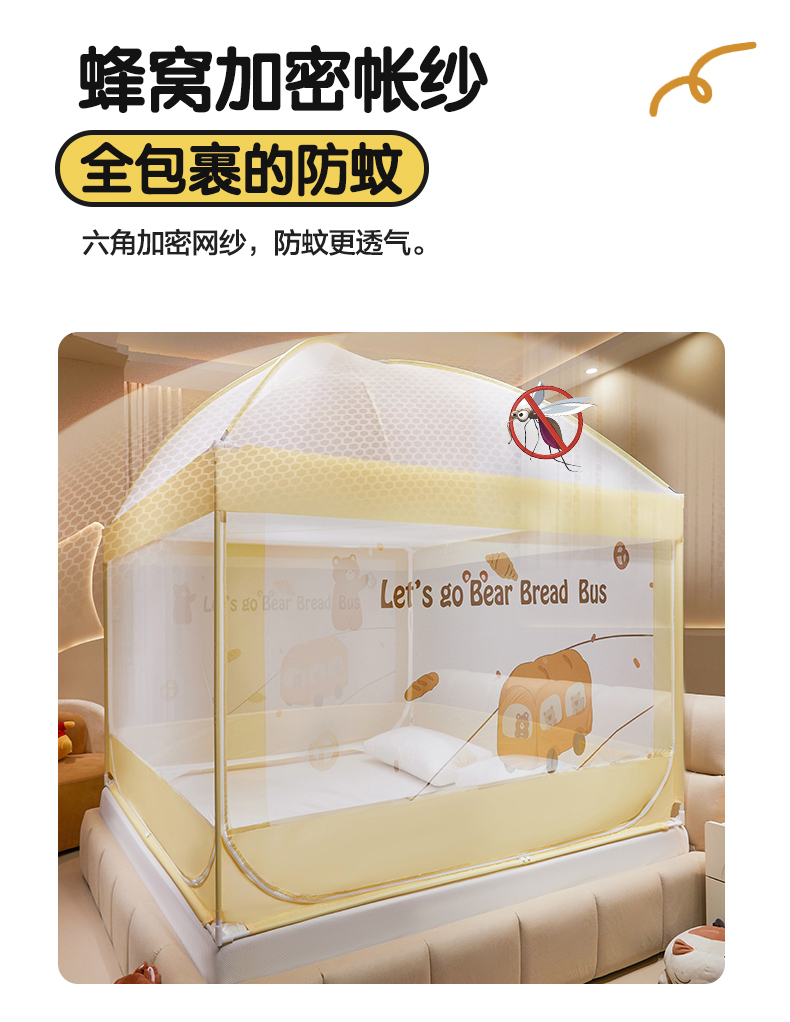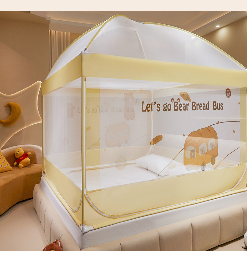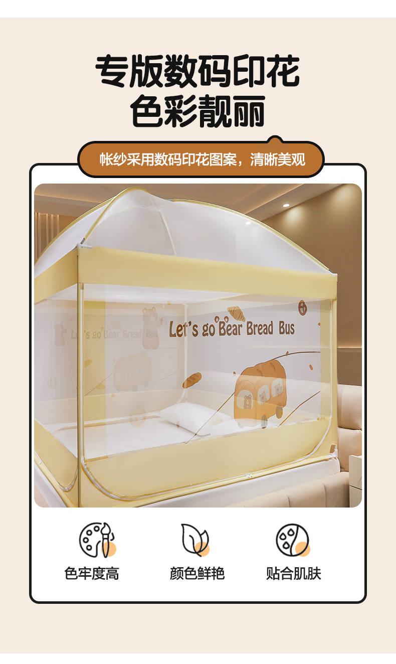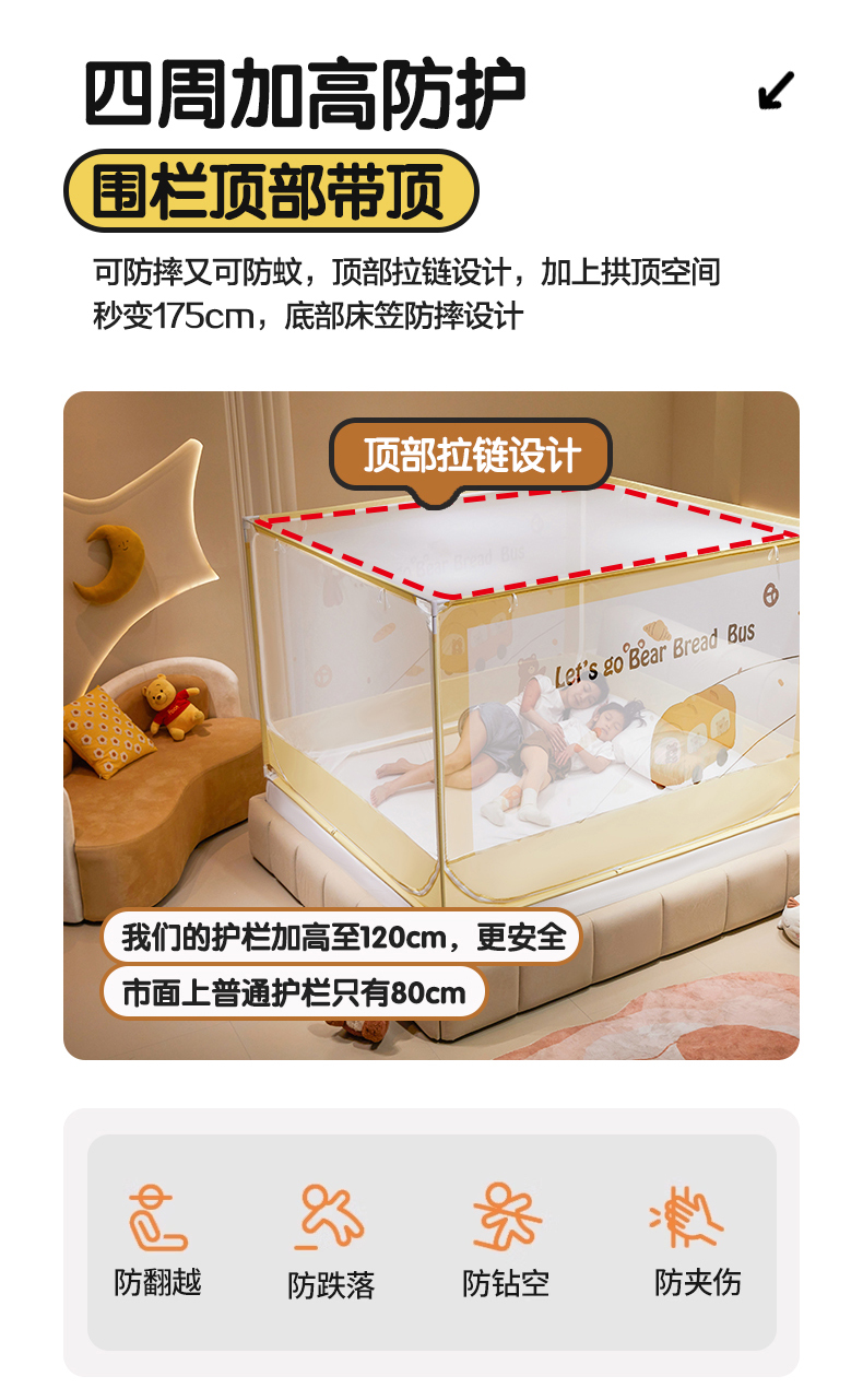 商品名称:青竹苑 2024新款围栏款印花坐床蚊帐蒙古包防摔睡帐 围栏-熊熊巴士