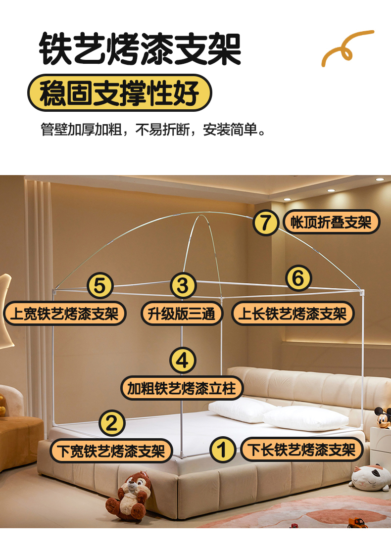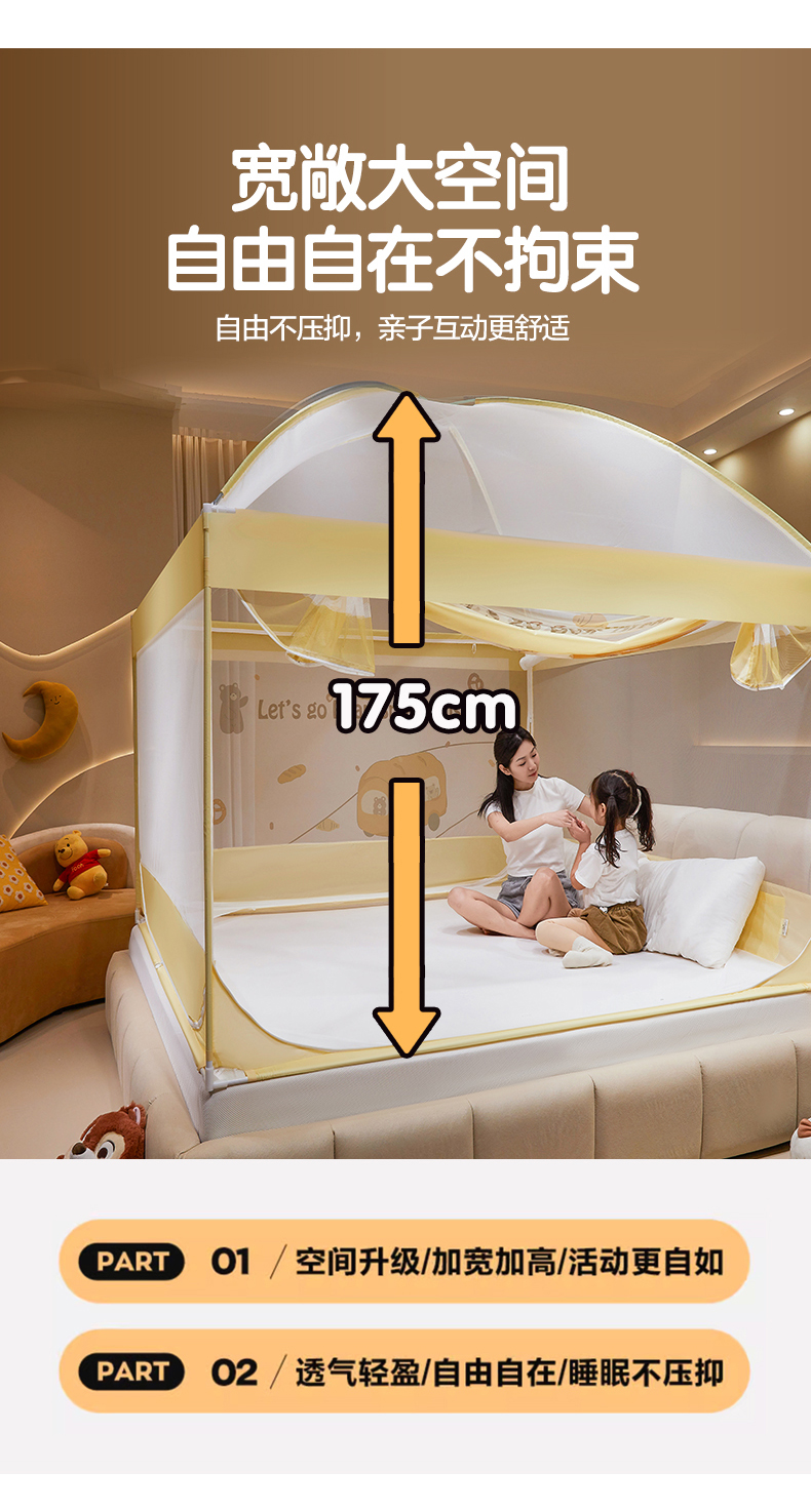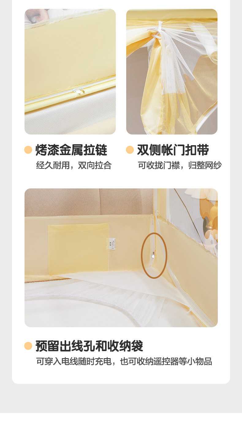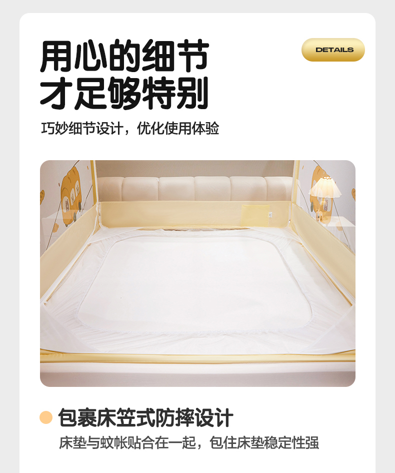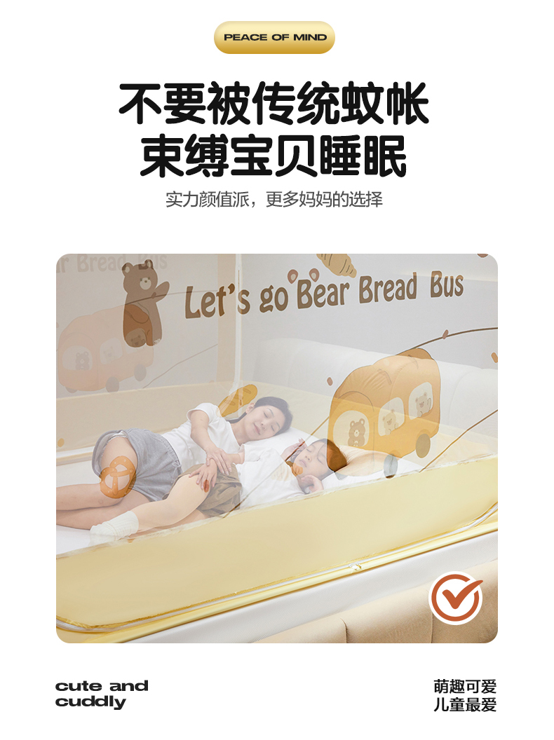 商品名称:青竹苑 2024新款围栏款印花坐床蚊帐蒙古包防摔睡帐 围栏-熊熊巴士