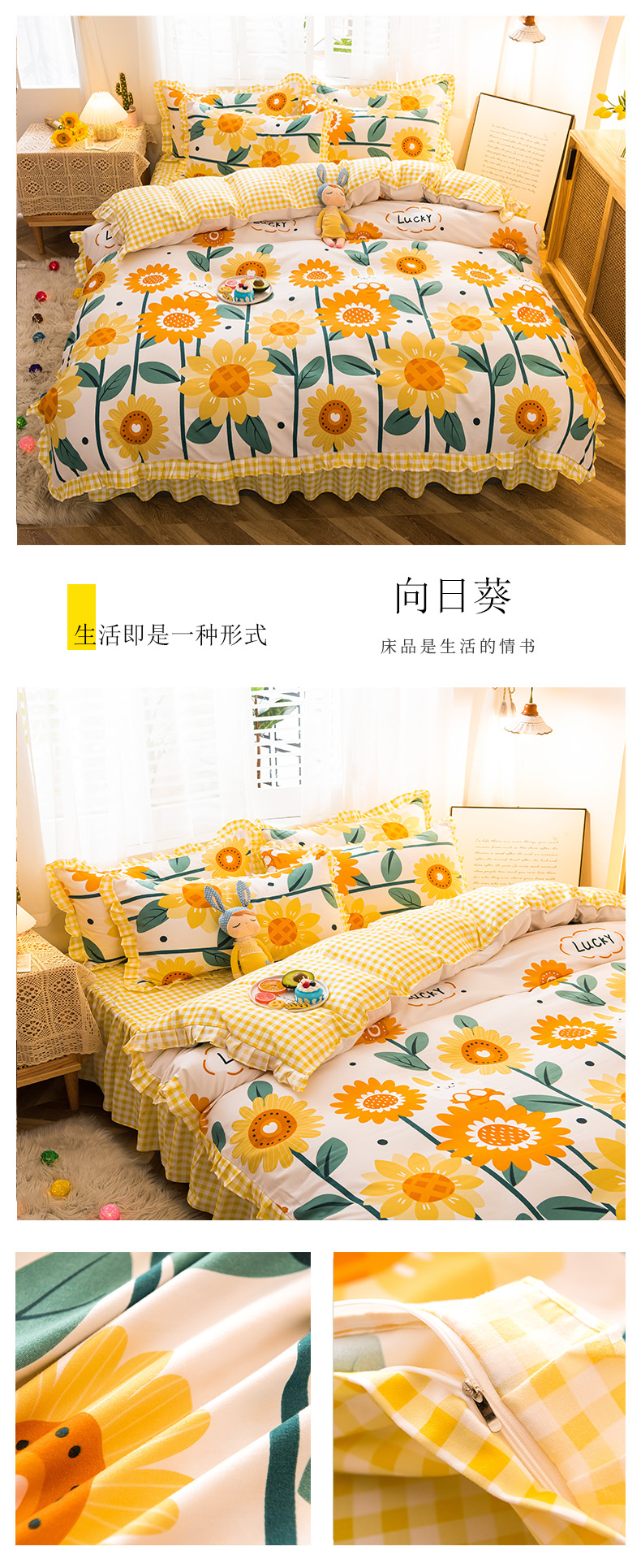 当前位置: 91家纺网 > 商品网购 > 床品套件 > 四件套 > 磨绒四件套 > 秋艳2023新款直播电商爆款韩版公主风加厚磨毛植物羊绒床裙四件套 向日葵