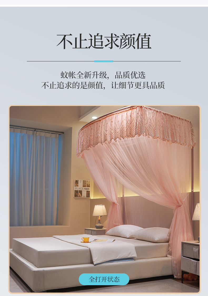 (总)夏彩 2025新款浪漫唯美T+U床笠式坐床外穿防摔蚊帐-88610,886610冰海蓝,886610极光白,886610浅粉玉,886610浅水蓝,886610蔷薇粉,886610杏仁黄,886610雅士灰