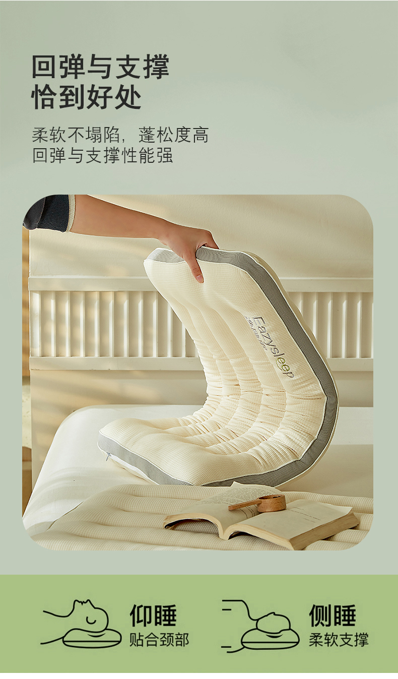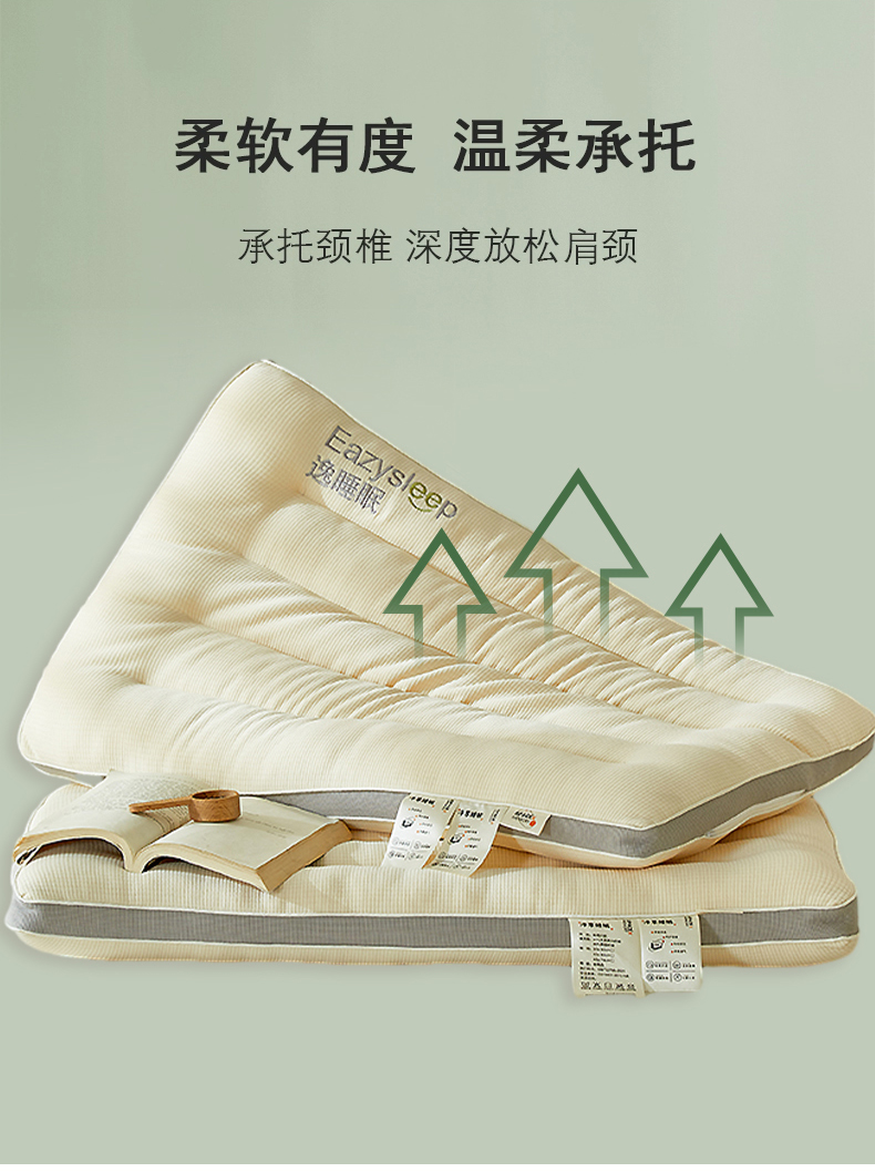 (总)梵希良品 2024新款纯棉双层三合一护颈枕助睡眠枕头枕芯40*60cm,双层三合一护颈枕800g,双层三合一护颈枕900g,双层三合一护颈枕1000g
