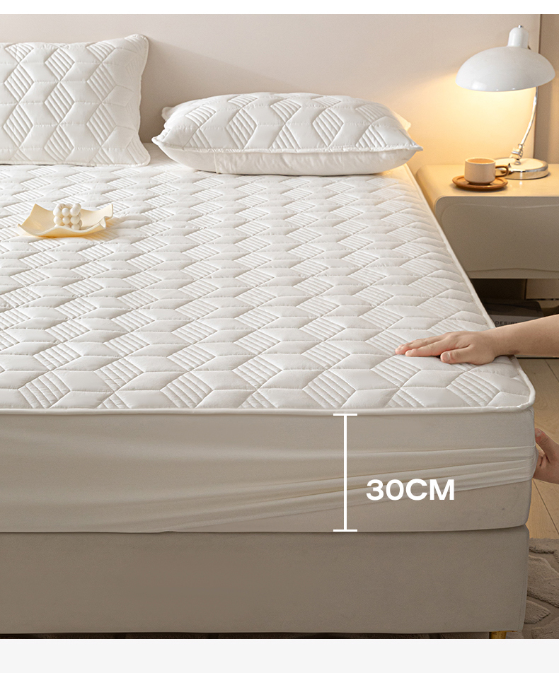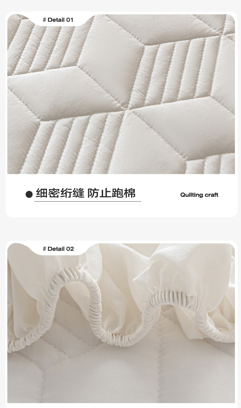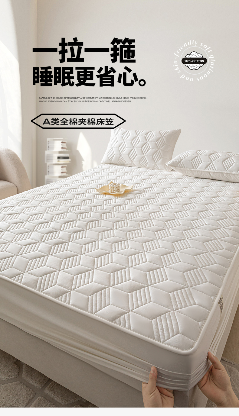 商品名称:其奥 2025新款高密全棉夹棉床笠三件套 珍珠白(床笠款)