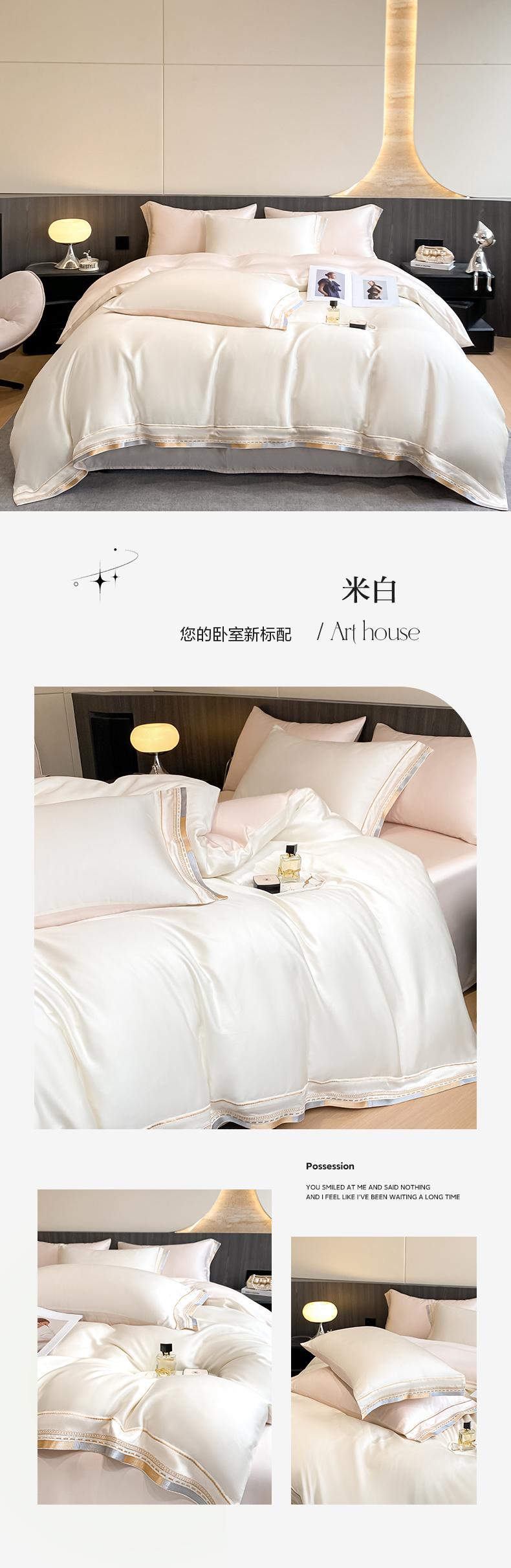 卓缦家纺2024莱赛尔天丝刺绣四件套 米白