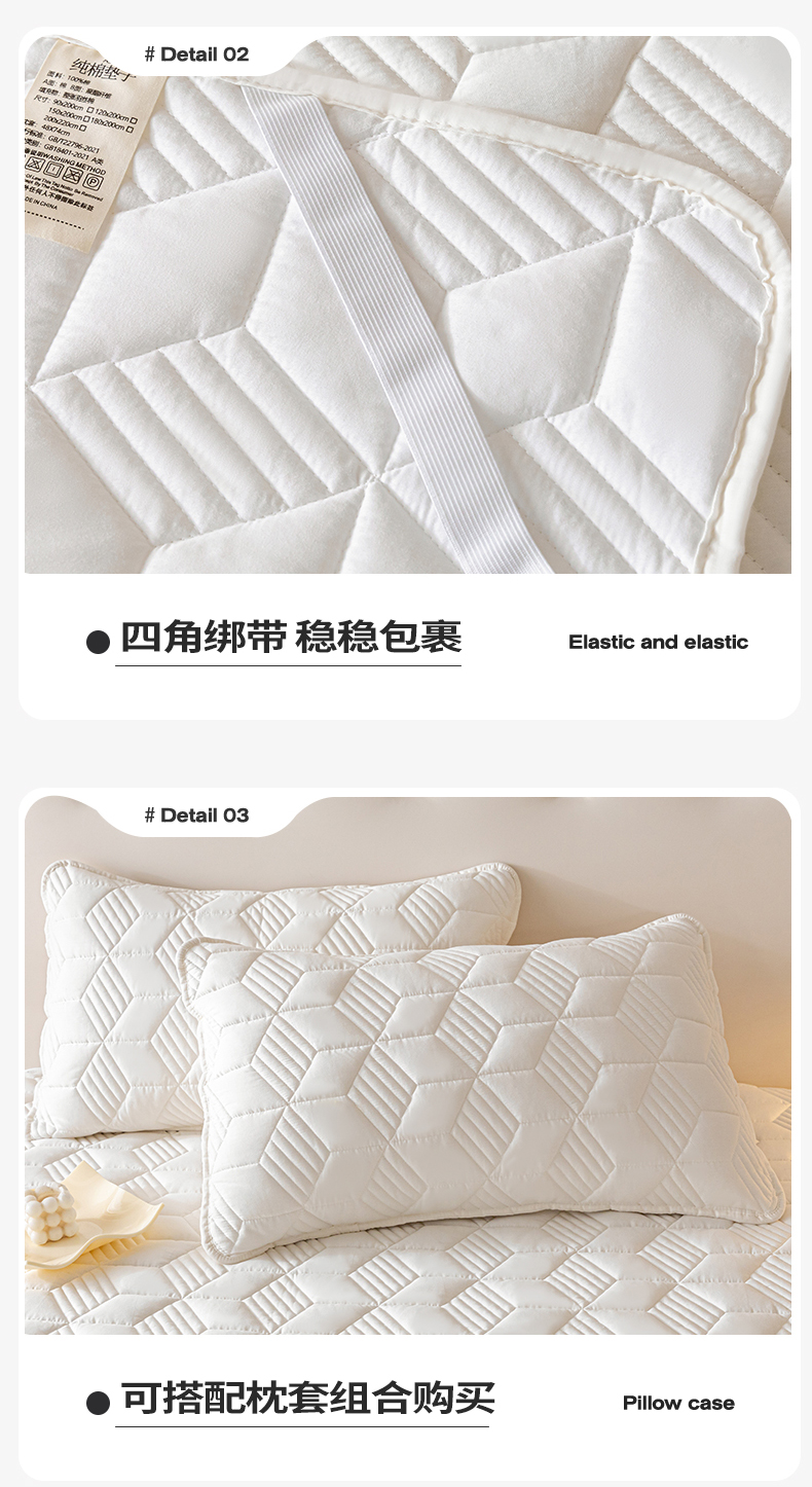 商品名称:其奥 2025新款全棉床垫软垫床褥三件套 珍珠白(床垫款)
