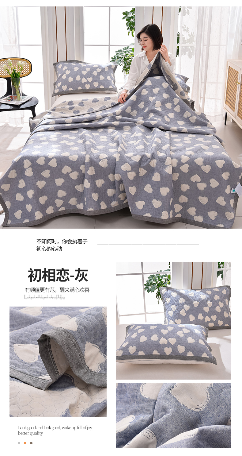 商品名称:米奈 2024新款A类抗菌全棉三层纱提花多功能盖毯(有质检报告) 初相恋-灰
