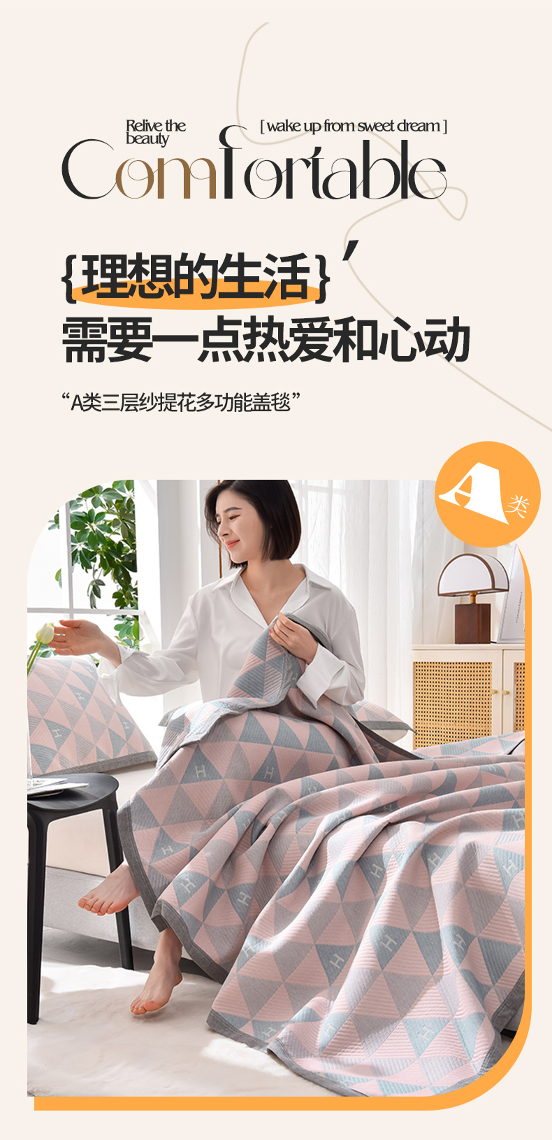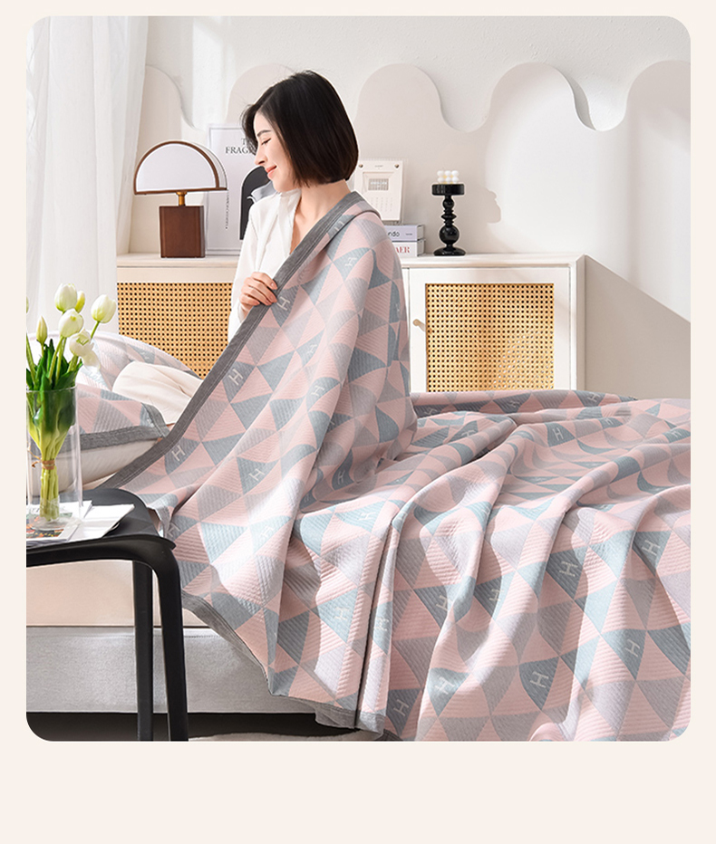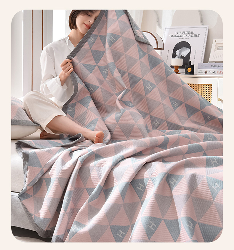 (总)米奈家居 2025全棉针织棉提花多功能盖毯,豆沙粉EN,豆沙粉H,公主粉,莱茵绿,玛雅灰,柠檬黄,绅士灰,天空蓝,香槟金EN,香槟金H,星空灰