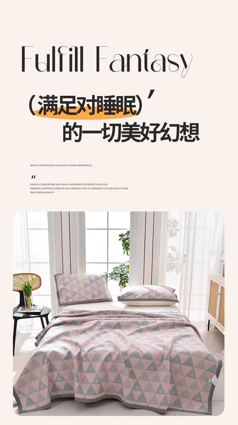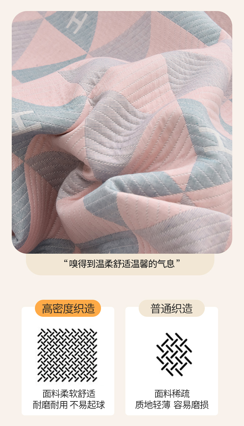 米奈 2024新款A类抗菌全棉三层纱提花多功能盖毯(有质检报告) 英伦字母-粉