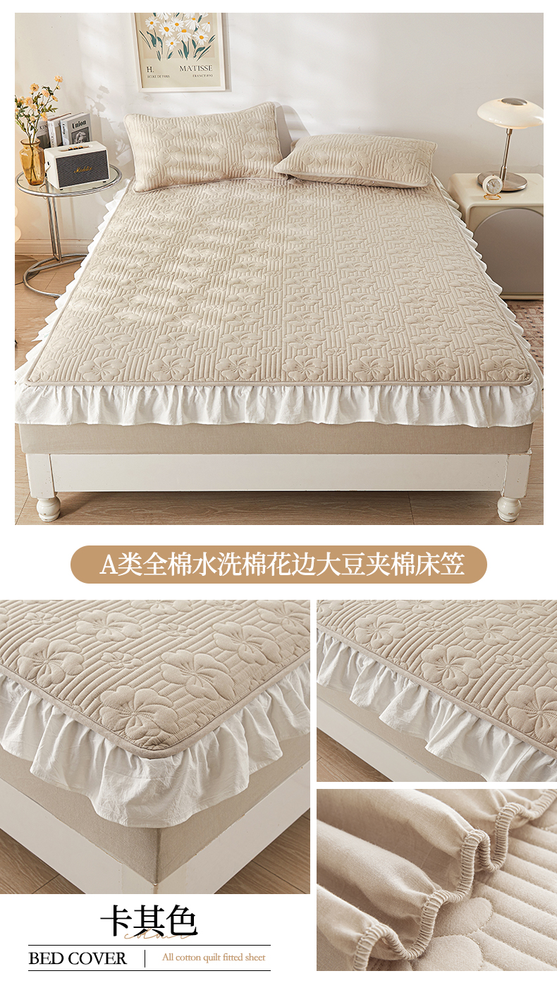 商品名称:3C 2024新款全棉大豆夹棉唯美花边床笠 卡其色