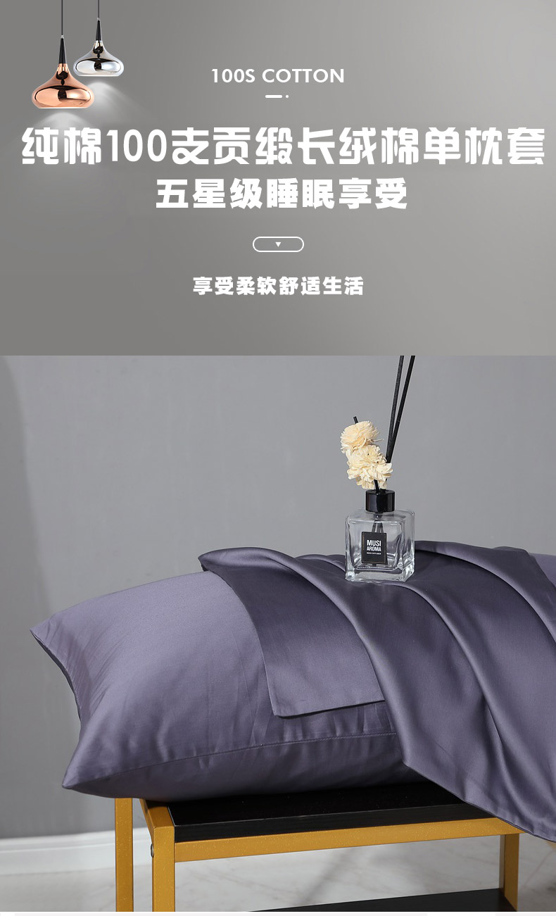晶缦家纺 2024新款100S全棉贡缎长绒棉纯色四件套和单品-纯沐系列 单枕套 纯沐-深度灰