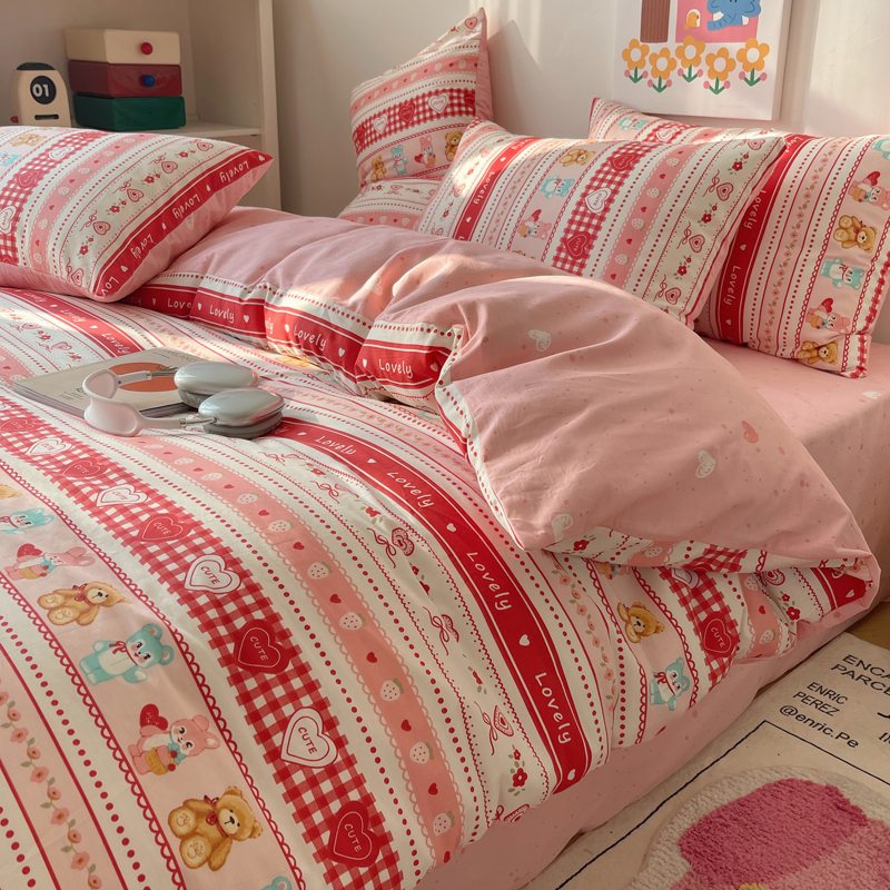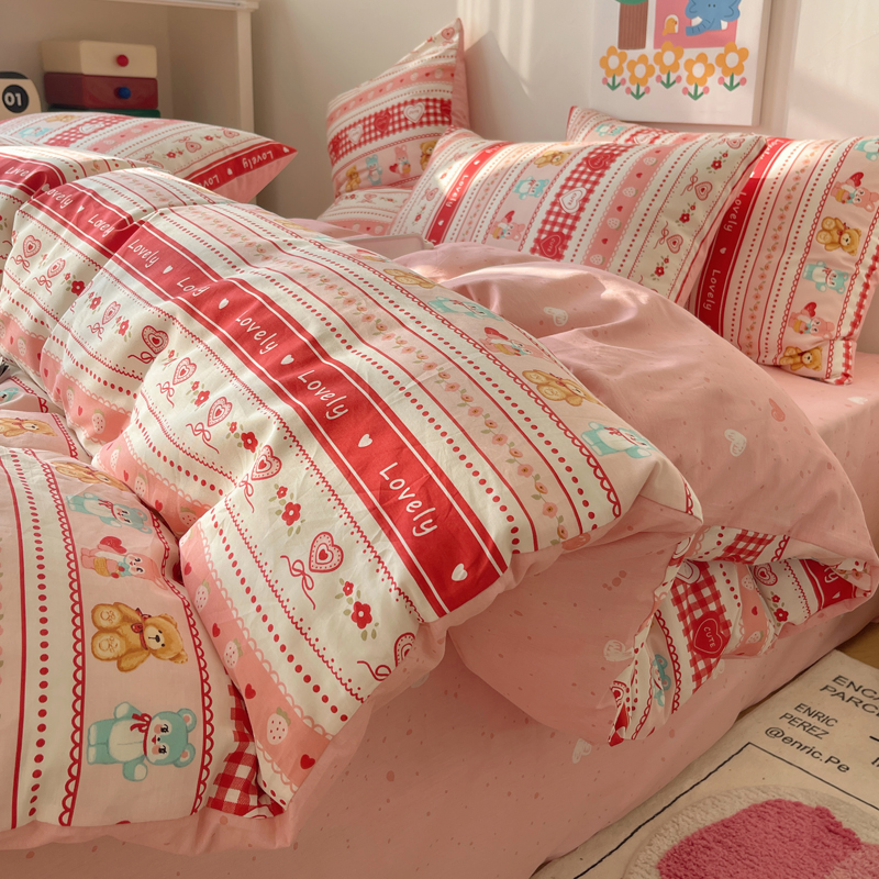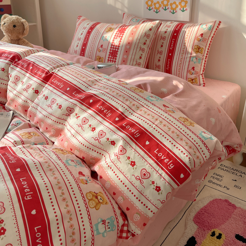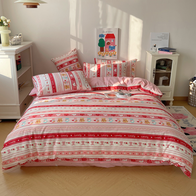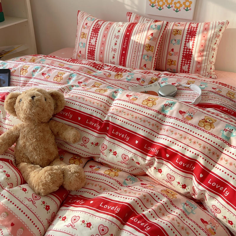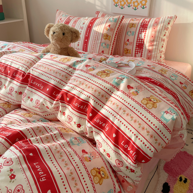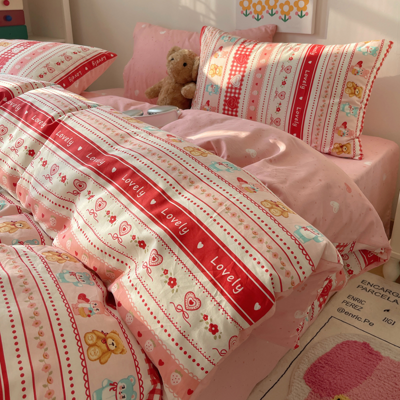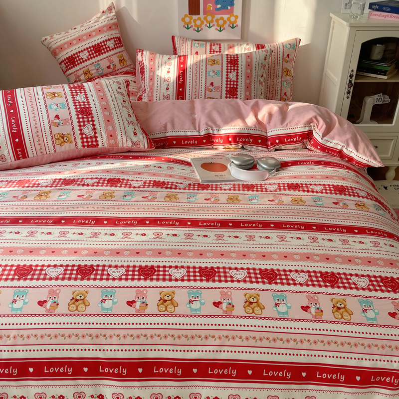 桃喜 2024新款40支13372全棉卡通印花小清新四件套 小熊物语
