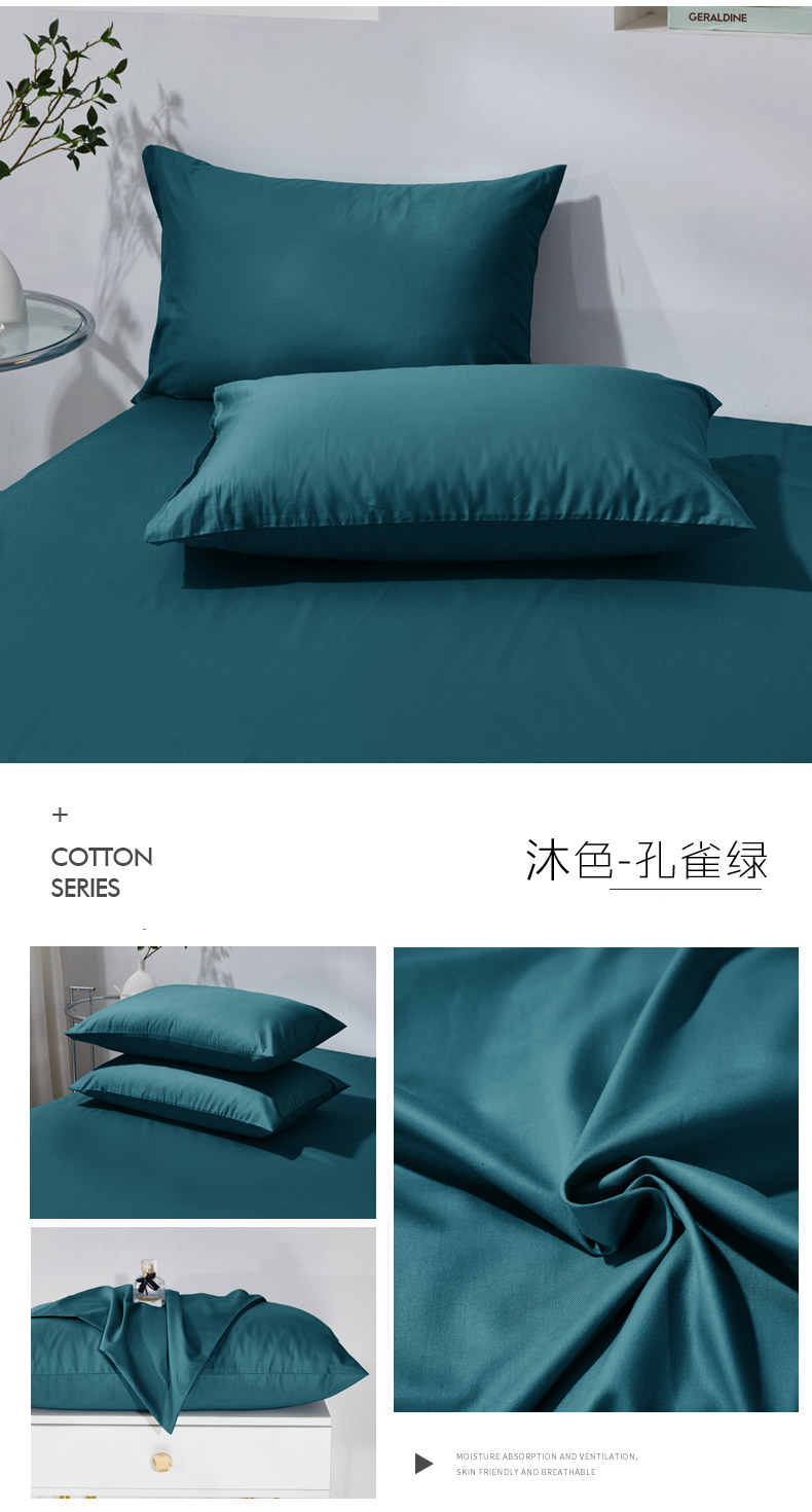 商品名称:晶缦家纺 2024新款喷气全棉13376纯棉斜纹纯色多规格四件套和单品-沐色系列 单枕套 沐色-孔雀绿