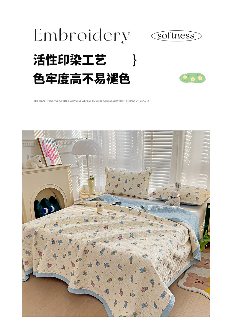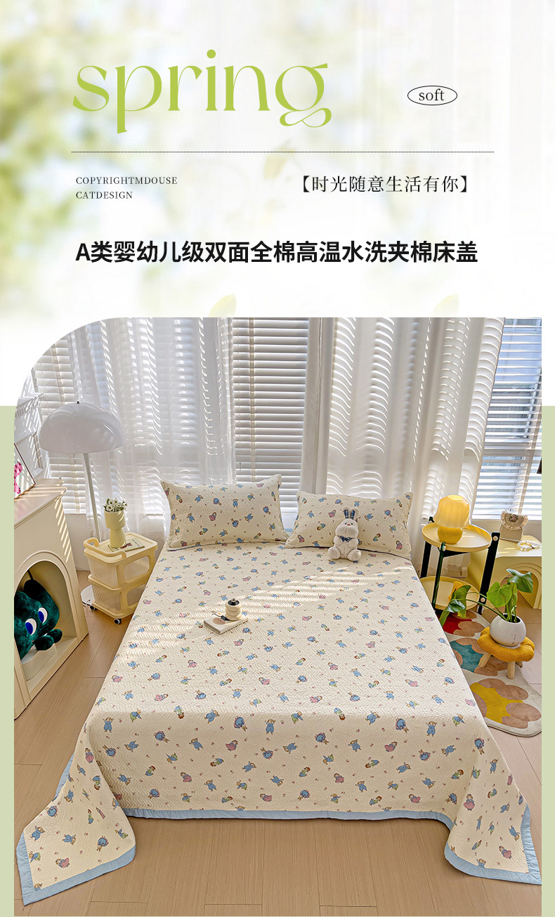 商品名称:2024新款A类60支双面全棉高温水洗夹棉单床盖填充新疆棉花 快乐兔