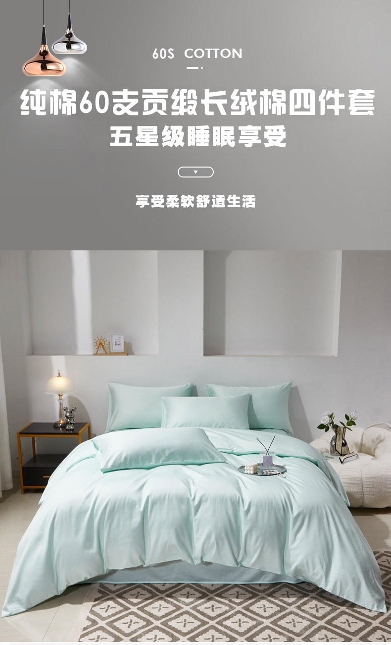 当前位置: 91家纺网 > 商品网购 > 床品套件 > 四件套 > 全棉普通四件套 > 晶缦家纺 2024新款全棉60支贡缎长绒棉纯色多规格四件套和单品-琅夕系列 四件套 琅夕-天青绿