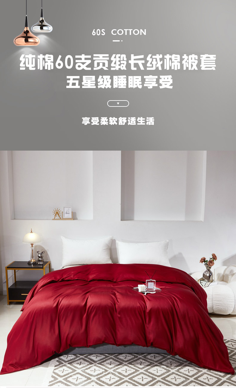 晶缦家纺 2024新款全棉60支贡缎长绒棉纯色多规格四件套和单品-琅夕系列 单被套 琅夕-酒红色