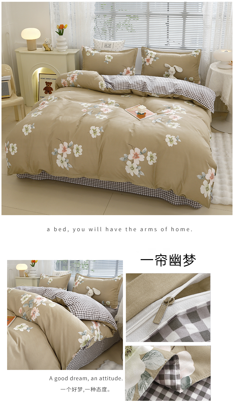 2024新款小清新ins风芦荟棉亲肤棉磨毛四件套植物羊绒直播 一帘幽梦