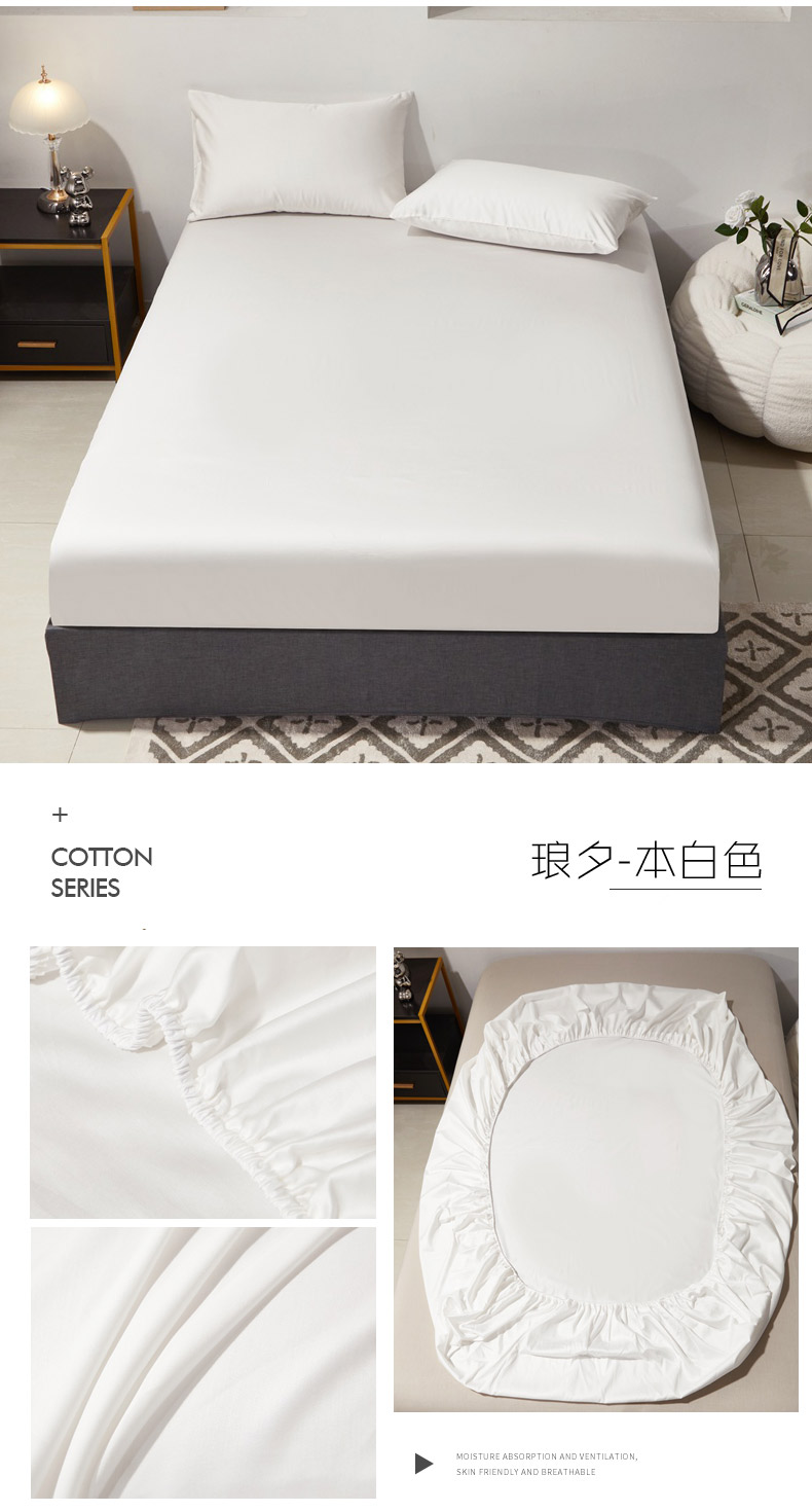 晶缦家纺 2024新款全棉60支贡缎长绒棉纯色多规格四件套和单品-琅夕系列 单床笠 琅夕-本白色