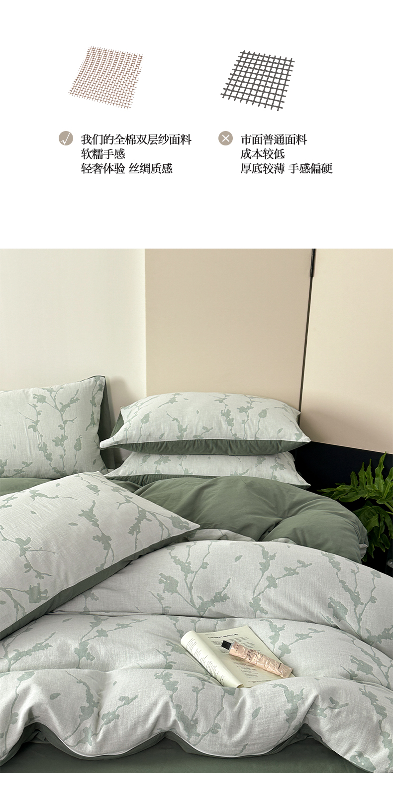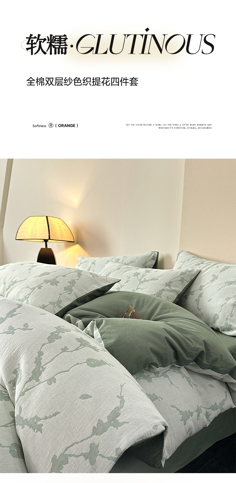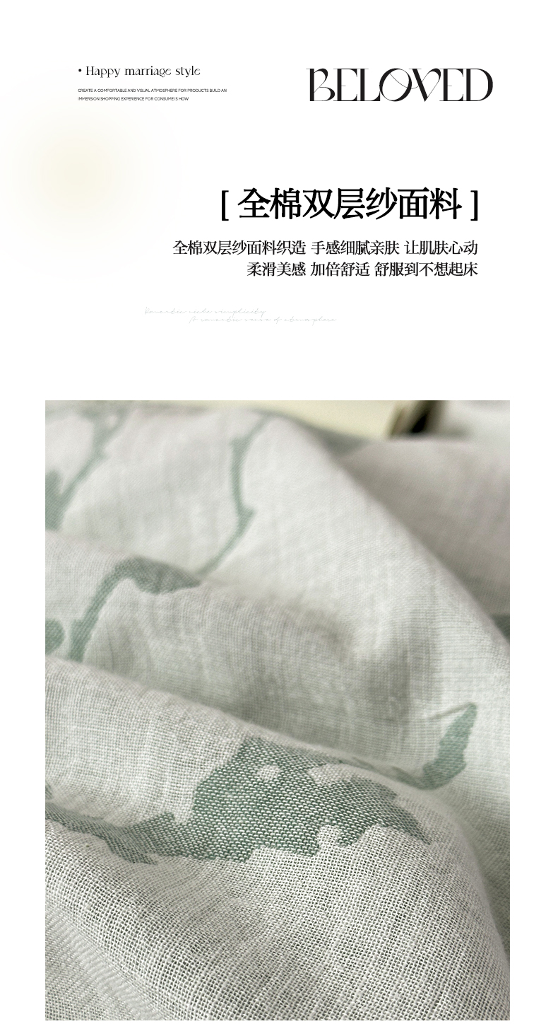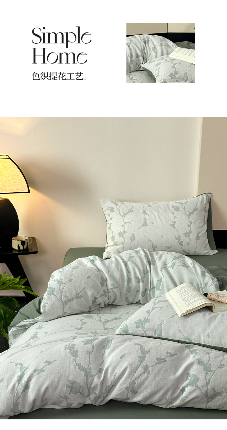 商品名称:雅居纺家纺 2024新款全棉双层纱色织提花四件套 初春-绿