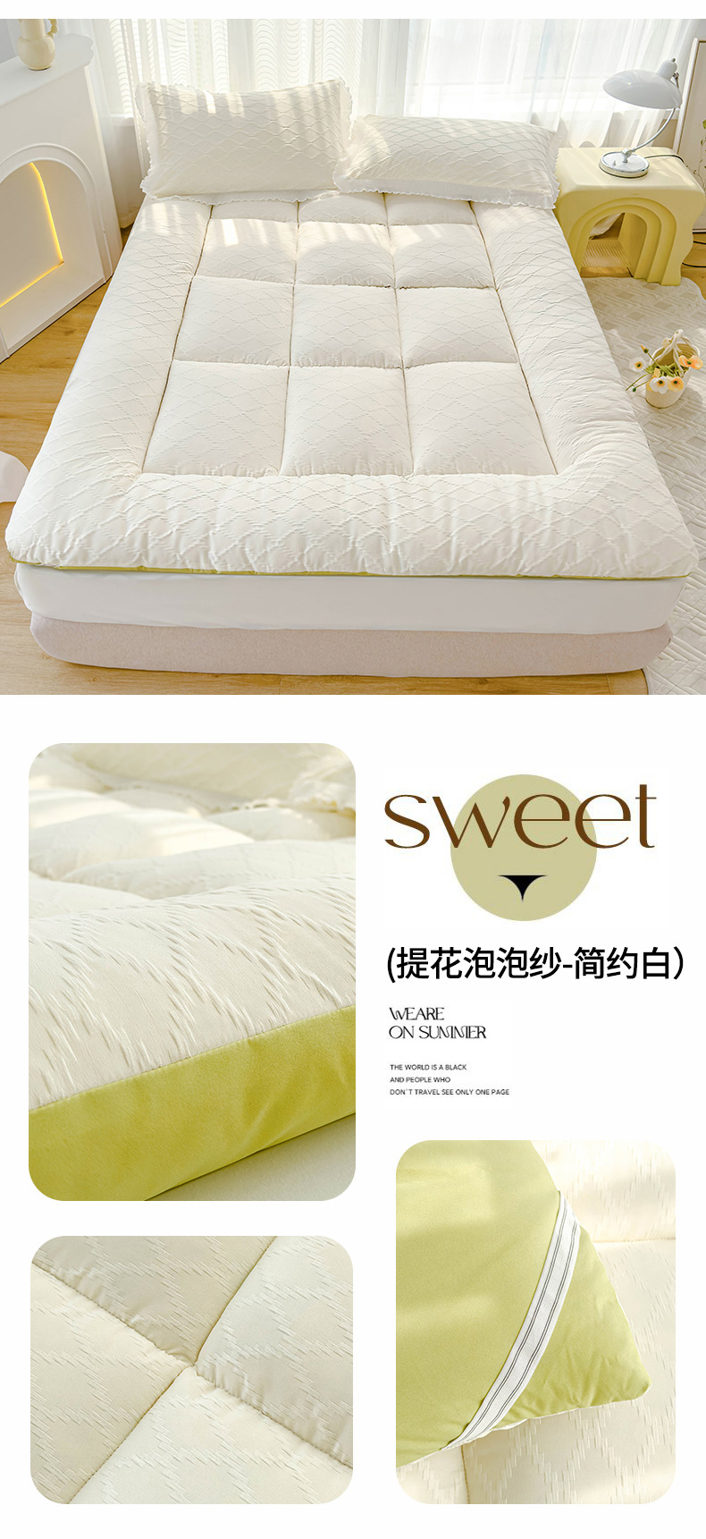 商品名称:默忆 2025新款泡泡纱提花绗缝活性印染羽丝棉床笠床垫款 白